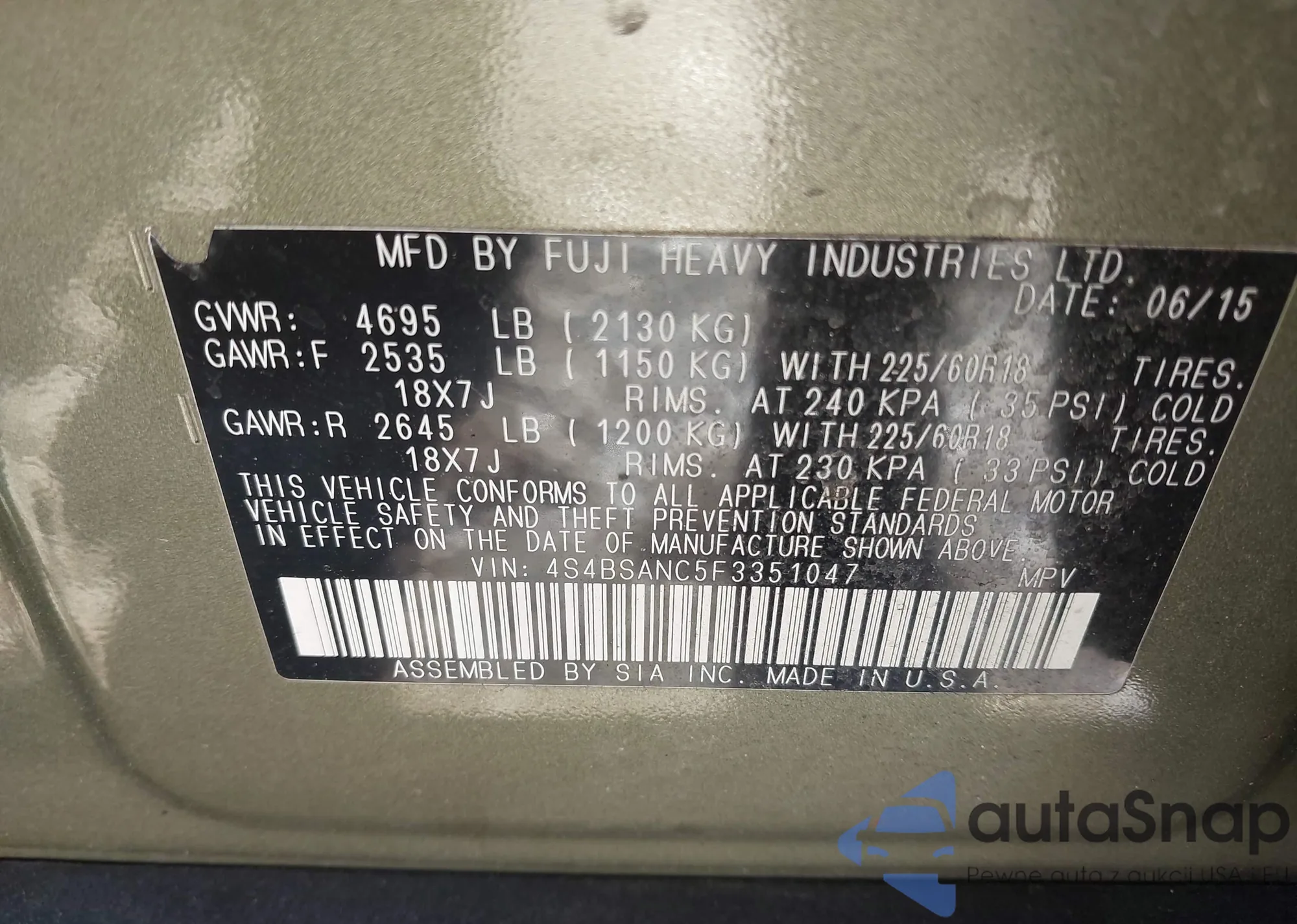 • VIN 4S4BSANC5F3351047