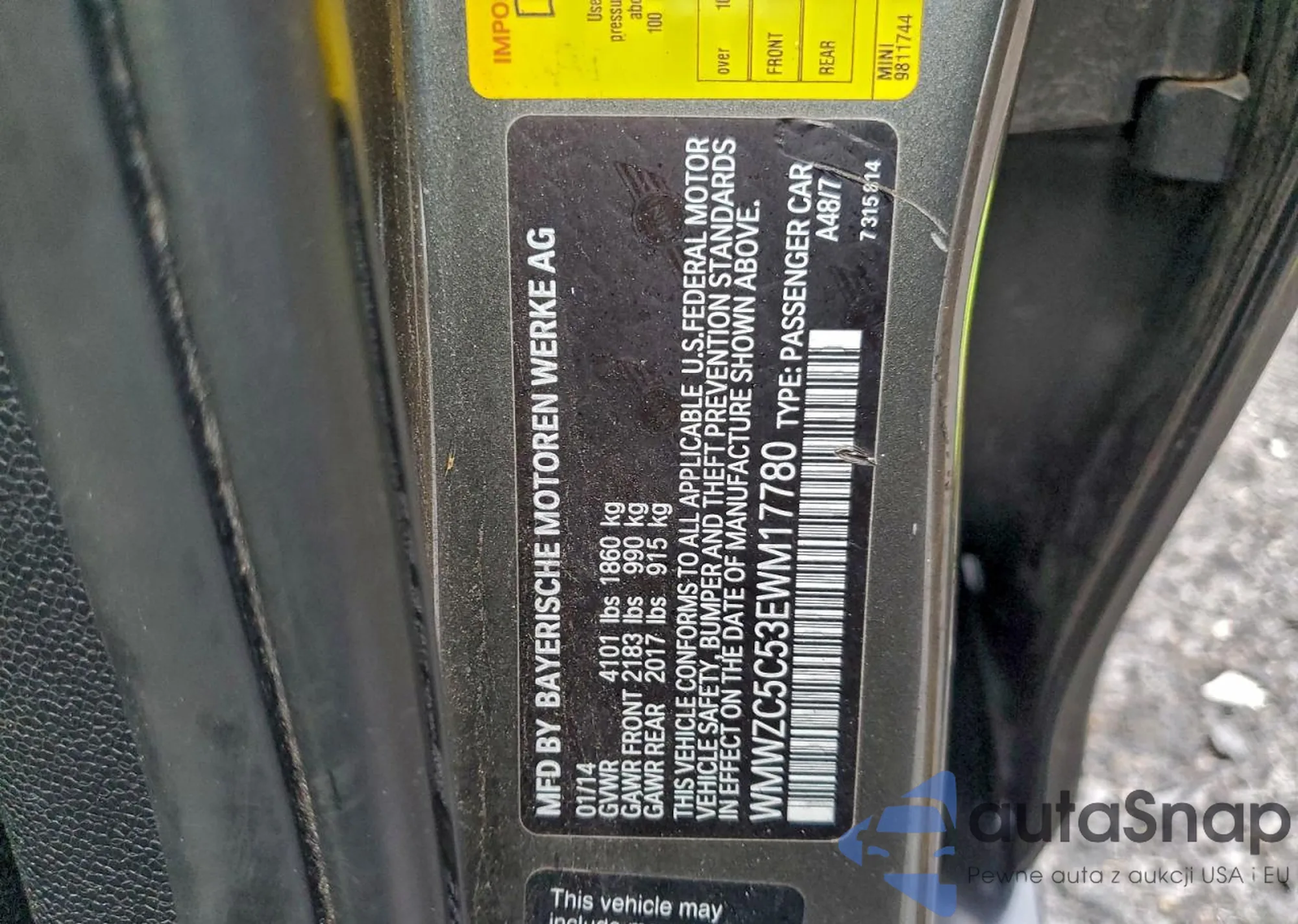 LOT: 97980925 VIN: WMWZC5C53EWM17780