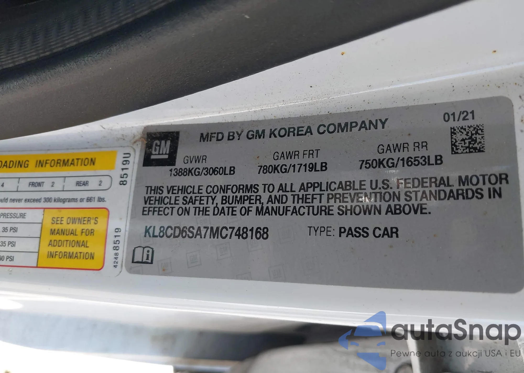 • VIN KL8CD6SA7MC748168