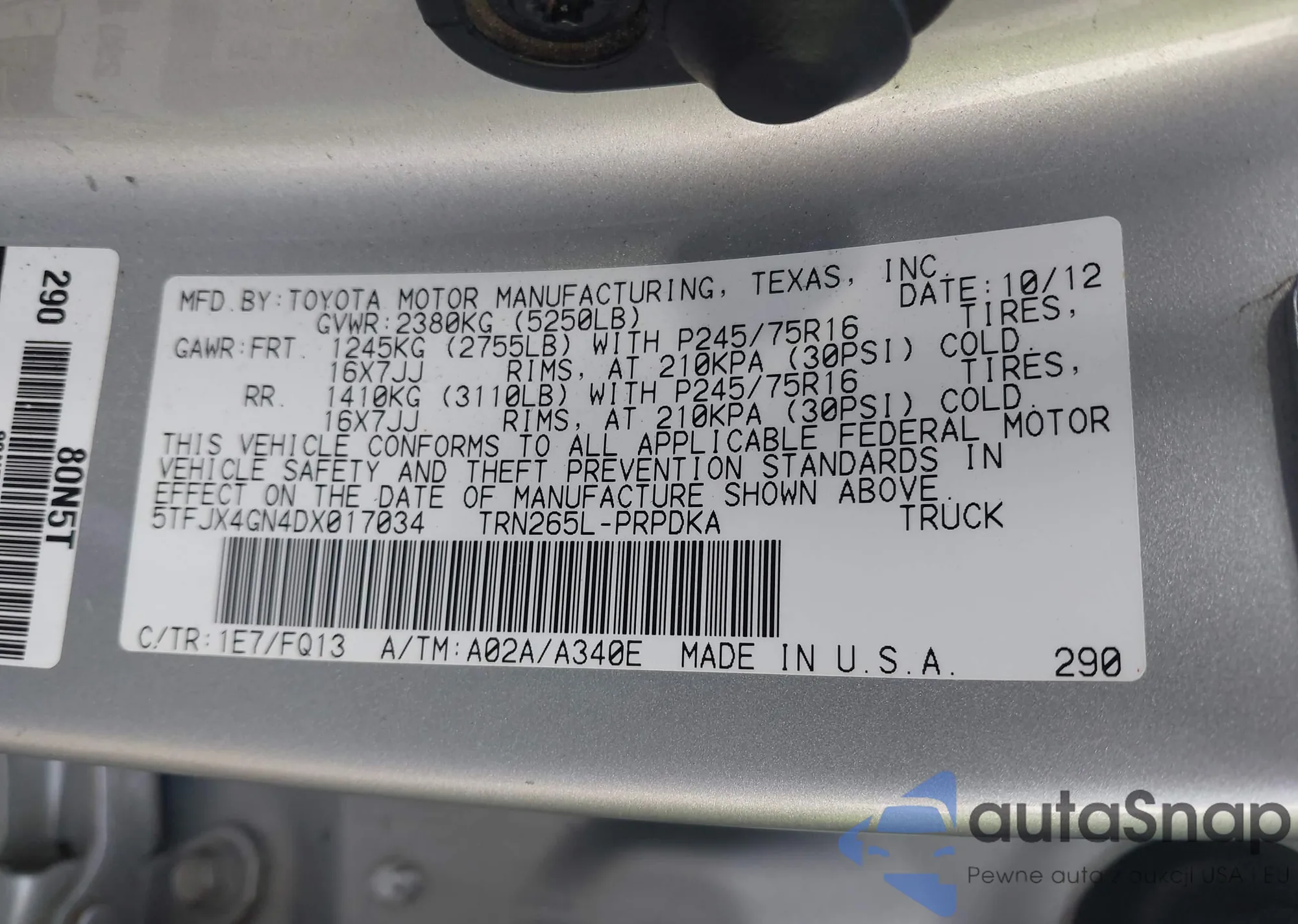 LOT: 43496141 VIN: 5TFJX4GN4DX017034