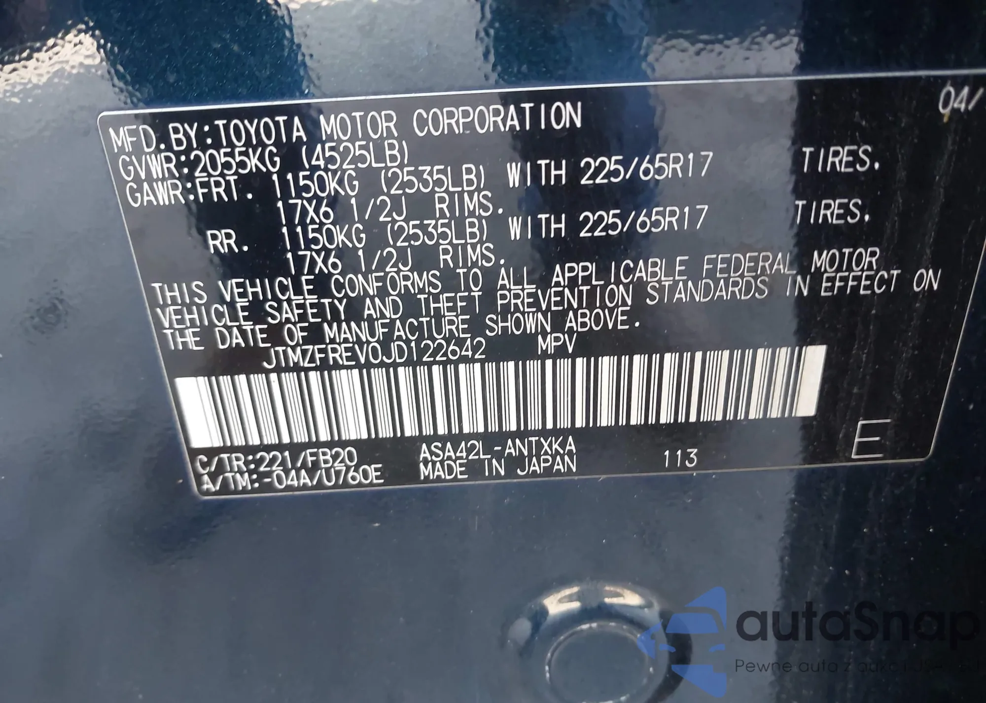 • VIN 5TFJX4GN4DX017034