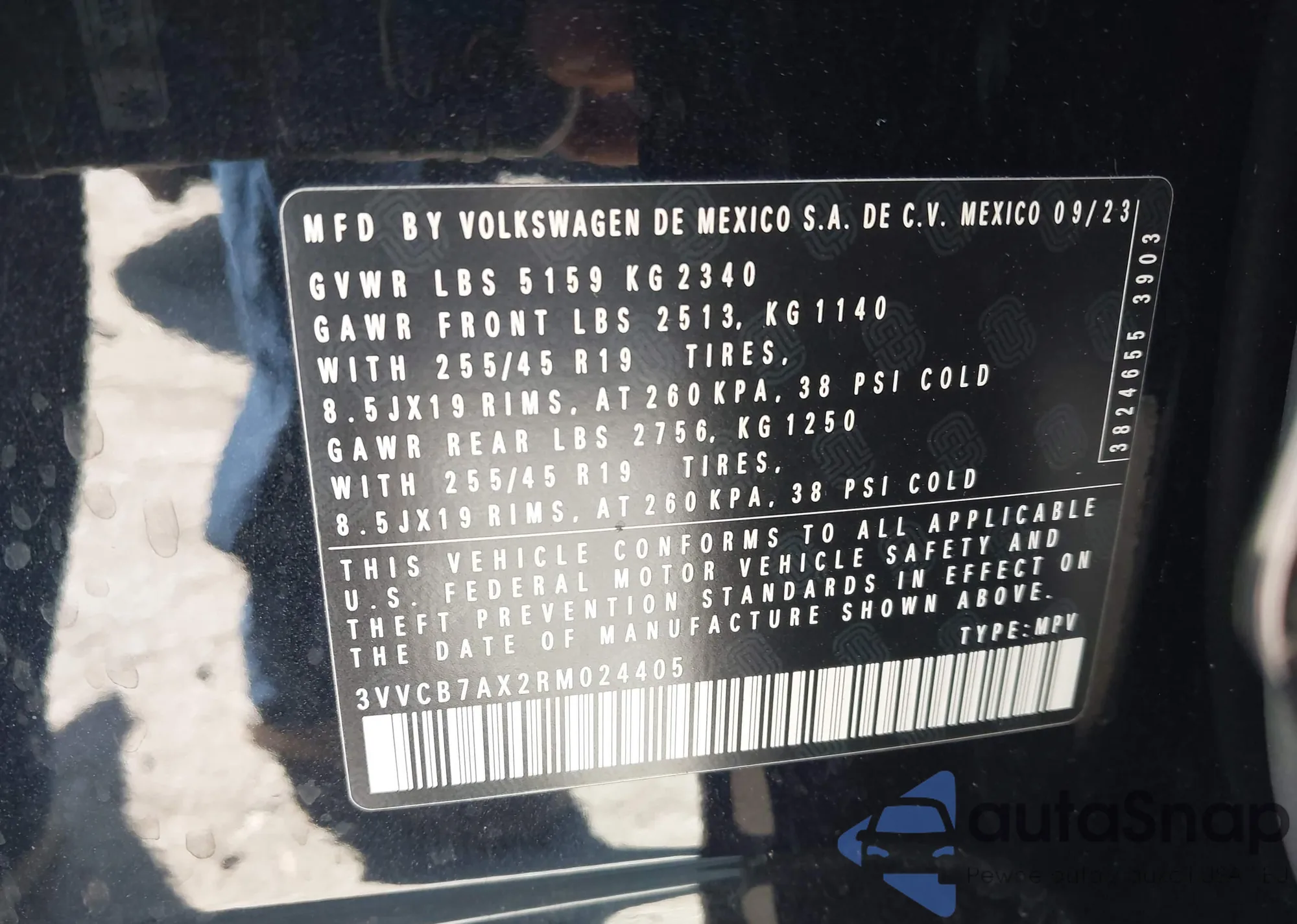 • VIN 5TDZA3EH9CS020902