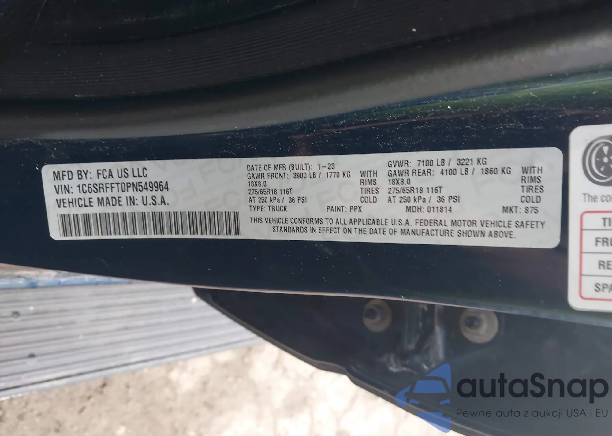 LOT: 43428013 VIN: 1C6SRFFT0PN549964