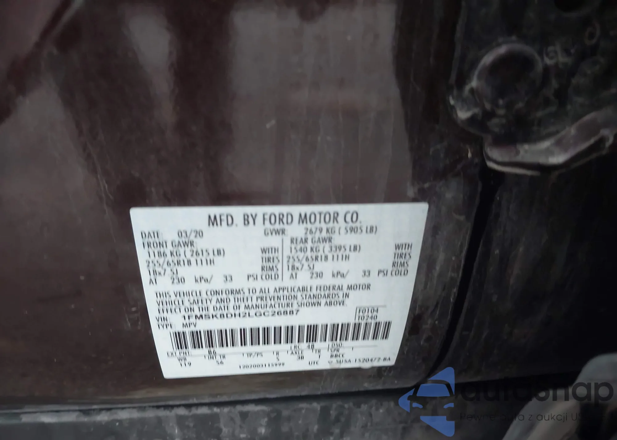 LOT: 43421696 VIN: 1FTFW1ED8MFC71224