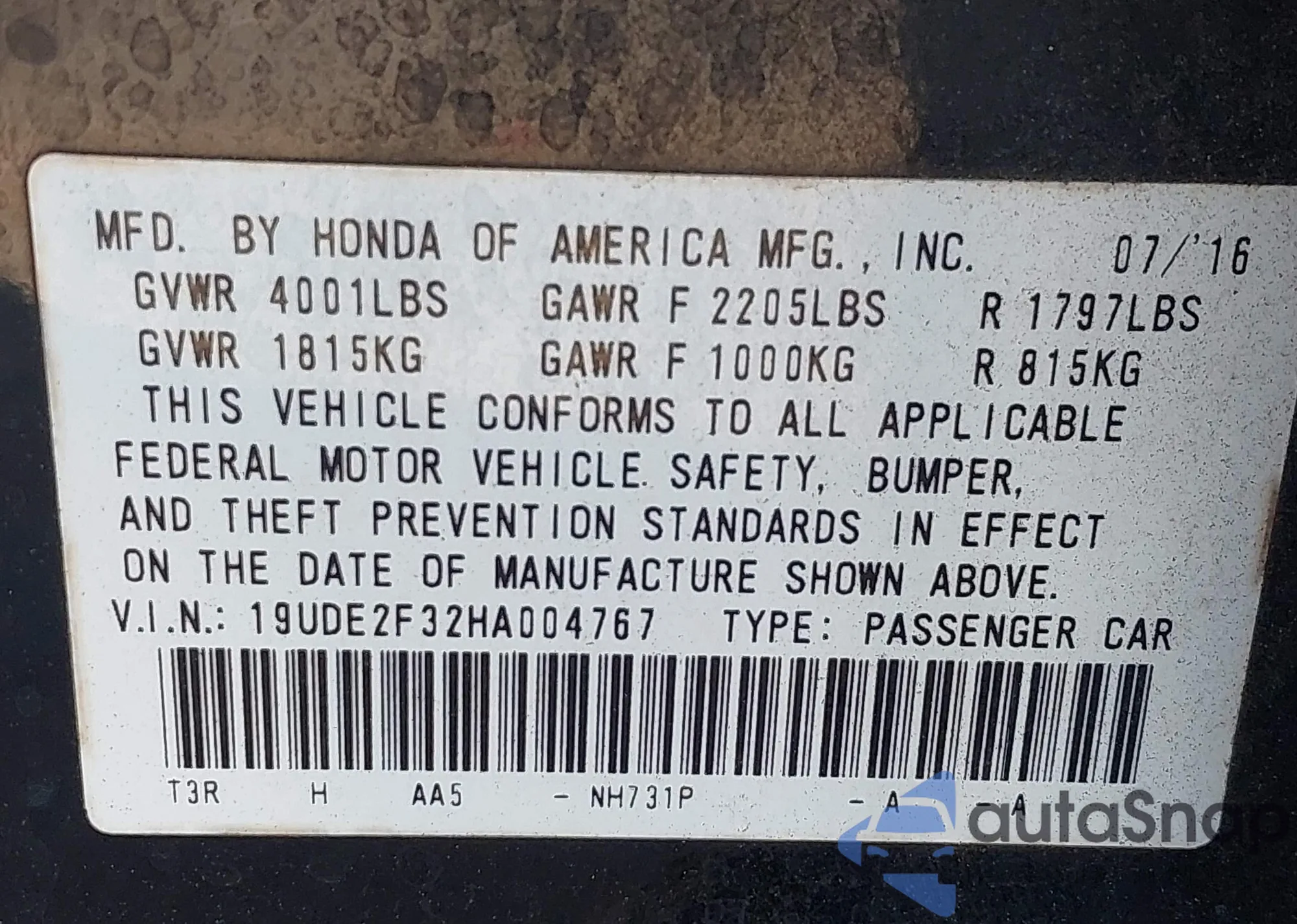 • VIN 5TDBZRFH7JS497059