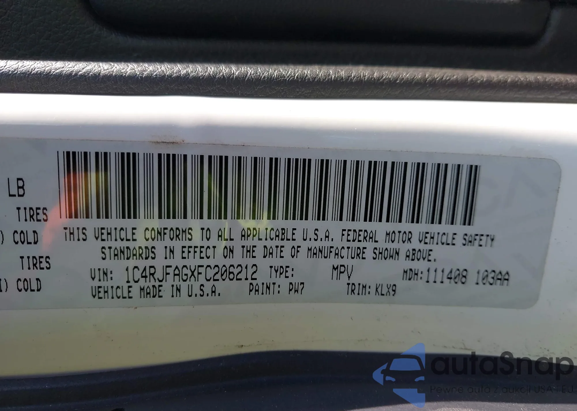 • VIN 1C4RJFAGXFC206212