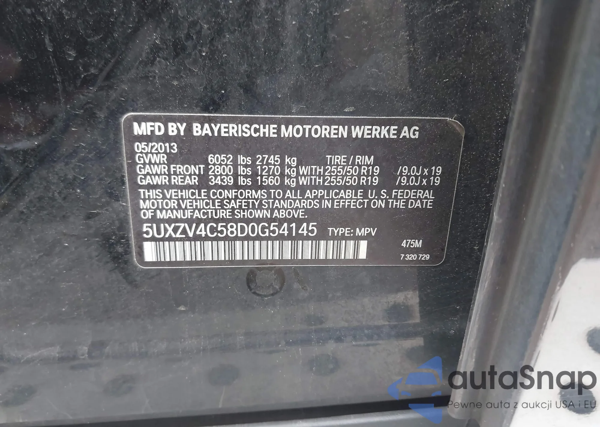 • VIN 5UXZV4C58D0G54145