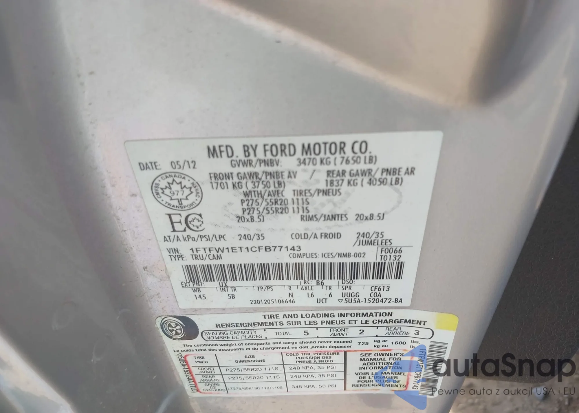 • VIN 1FTFW1ET1CFB77143