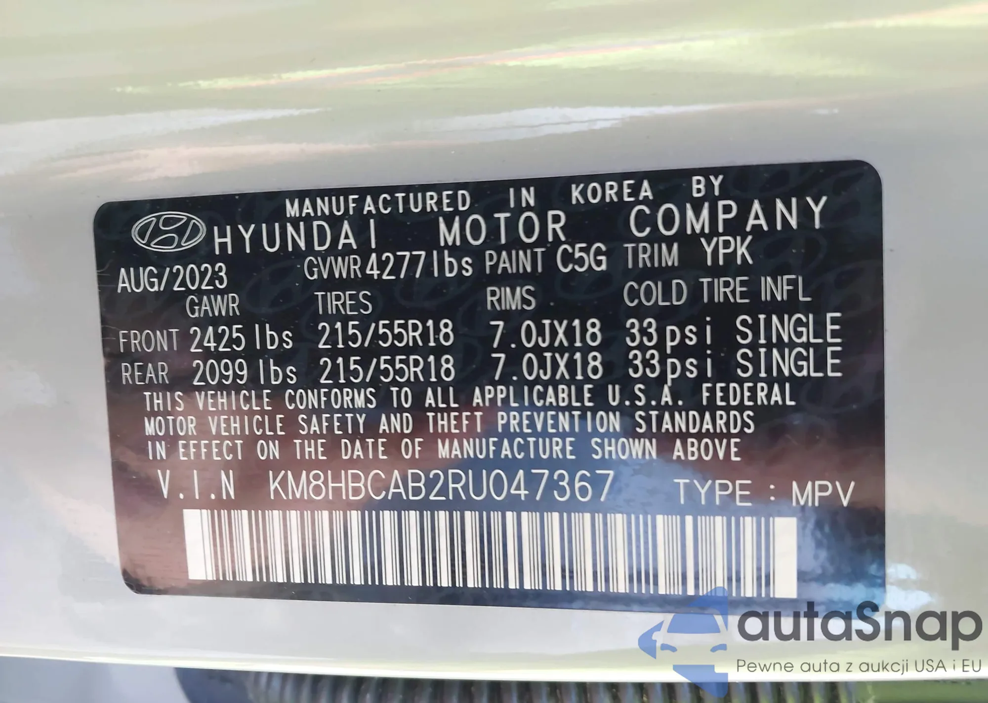 • VIN KM8HBCAB2RU047367