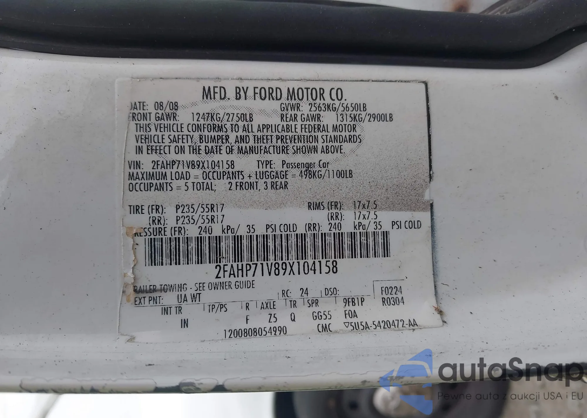 LOT: 43535781 VIN: 2FAHP71V89X104158
