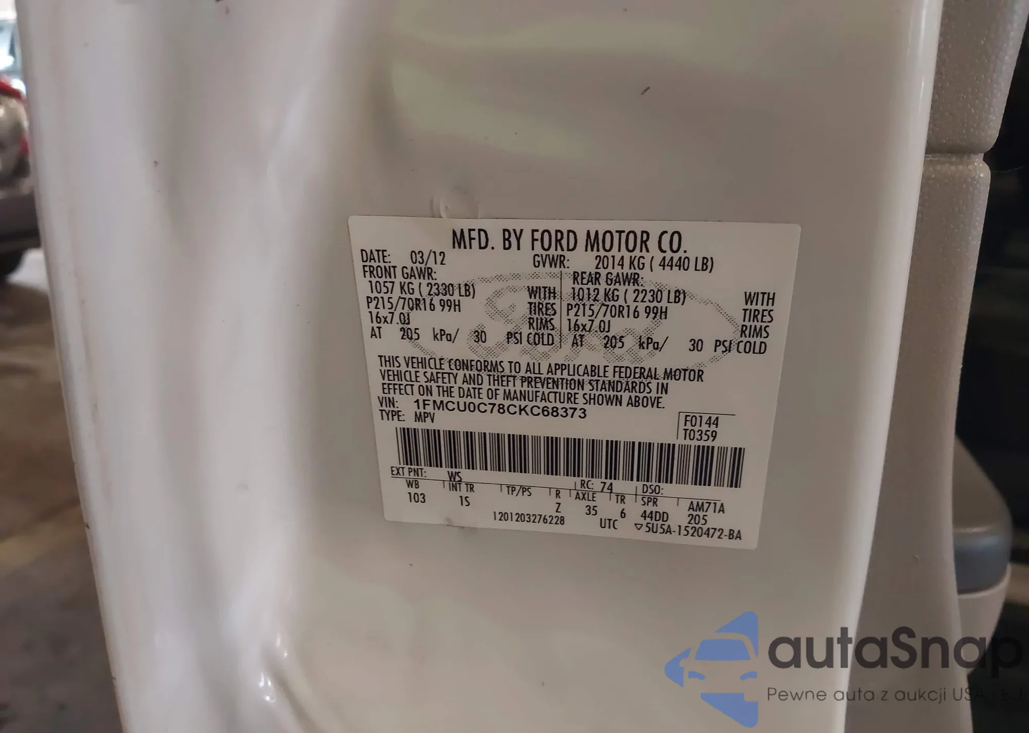 • VIN 1FMCU0C78CKC68373