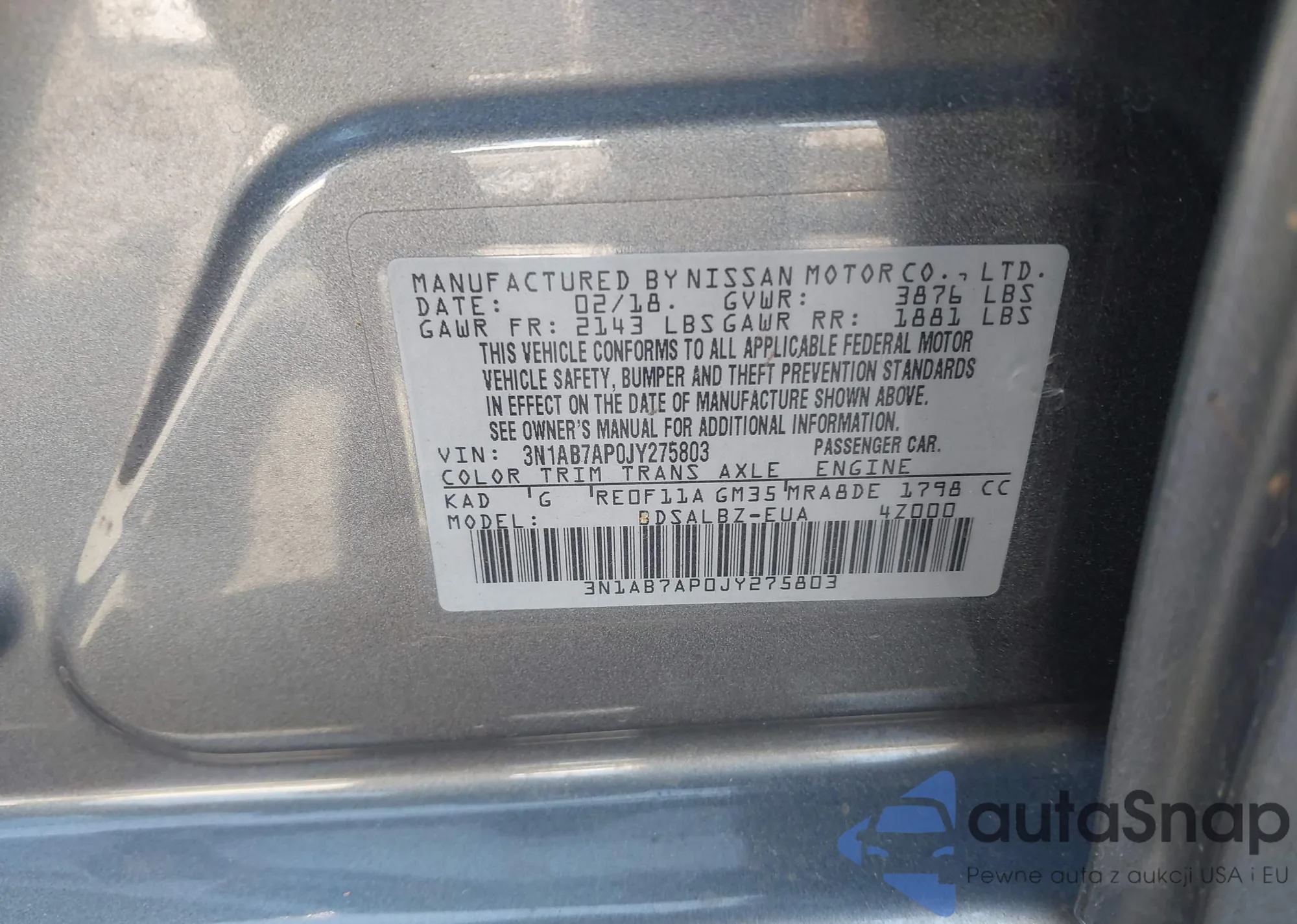 • VIN 3N1AB7AP0JY275803