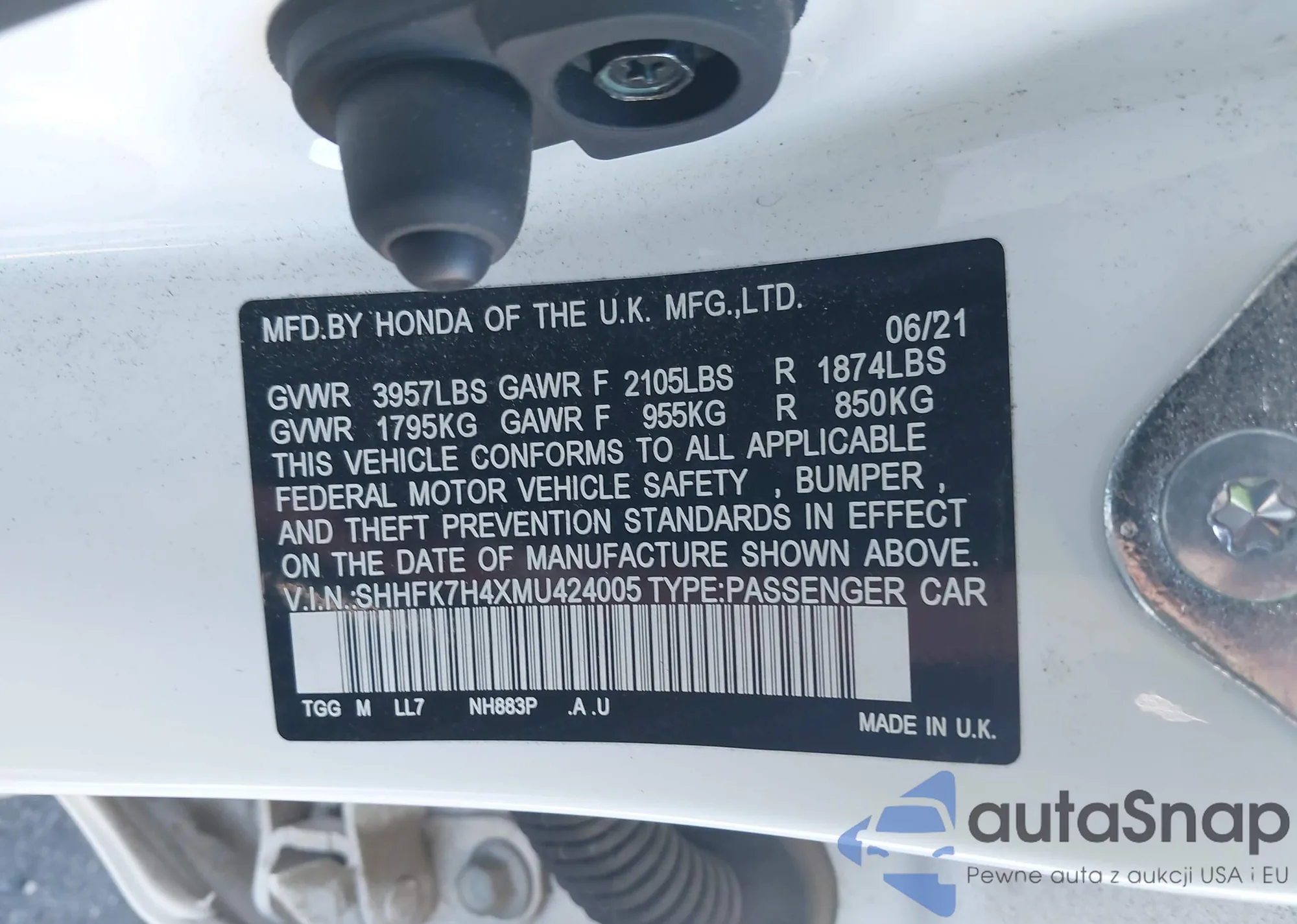 LOT: 43603154 VIN: 1HGCV2F33MA014360