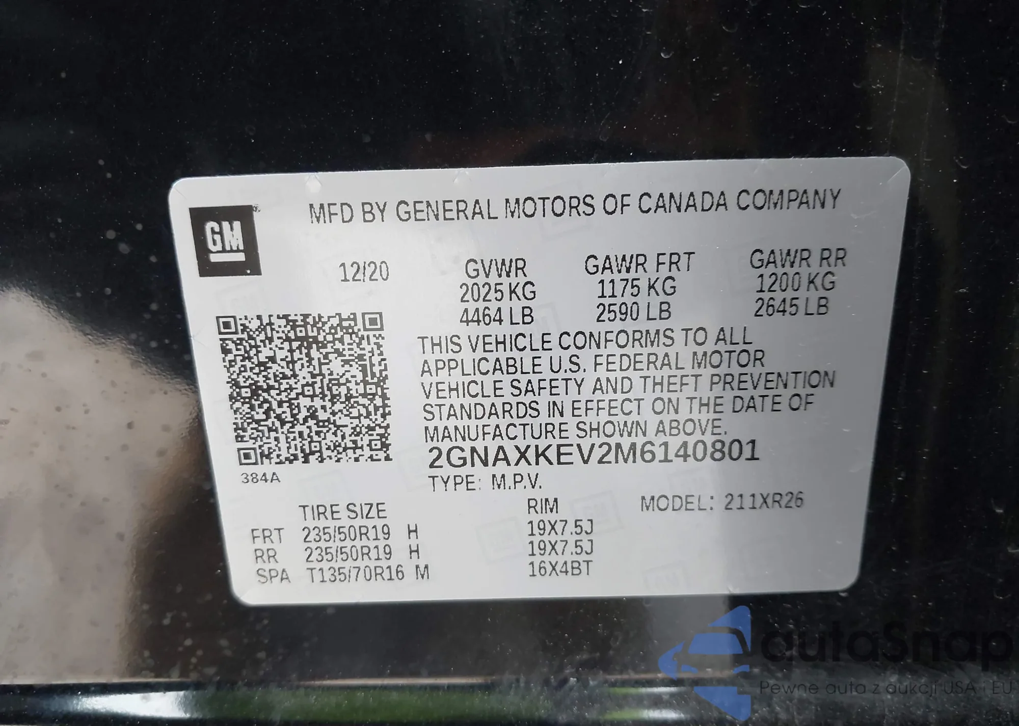 • VIN 2GNAXKEV2M6140801