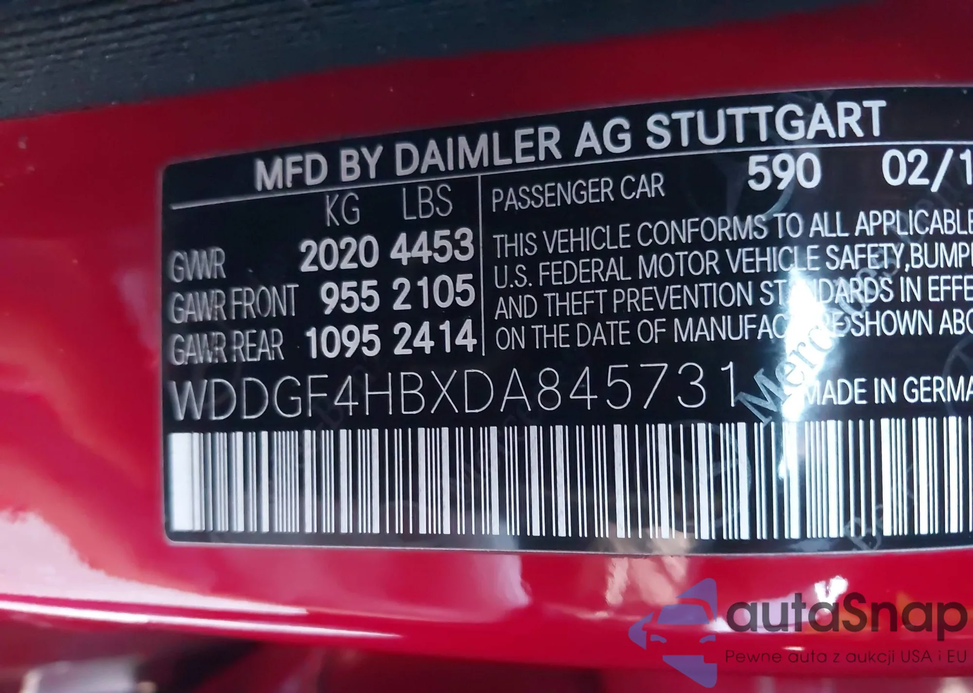 LOT: 43914500 VIN: WDDGF4HBXDA845731