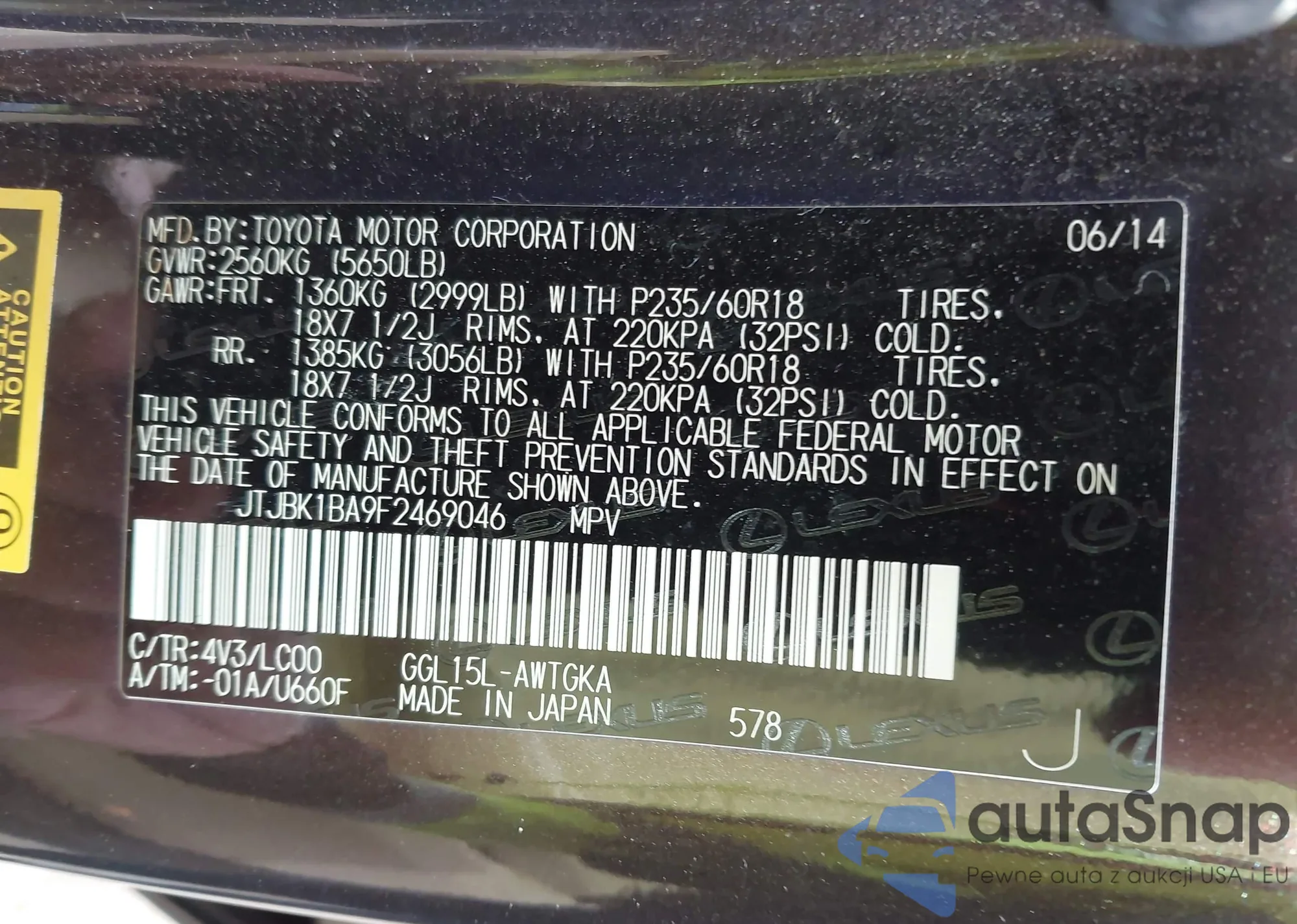 LOT: 43894899 VIN: JTDKN3DU3F0445401