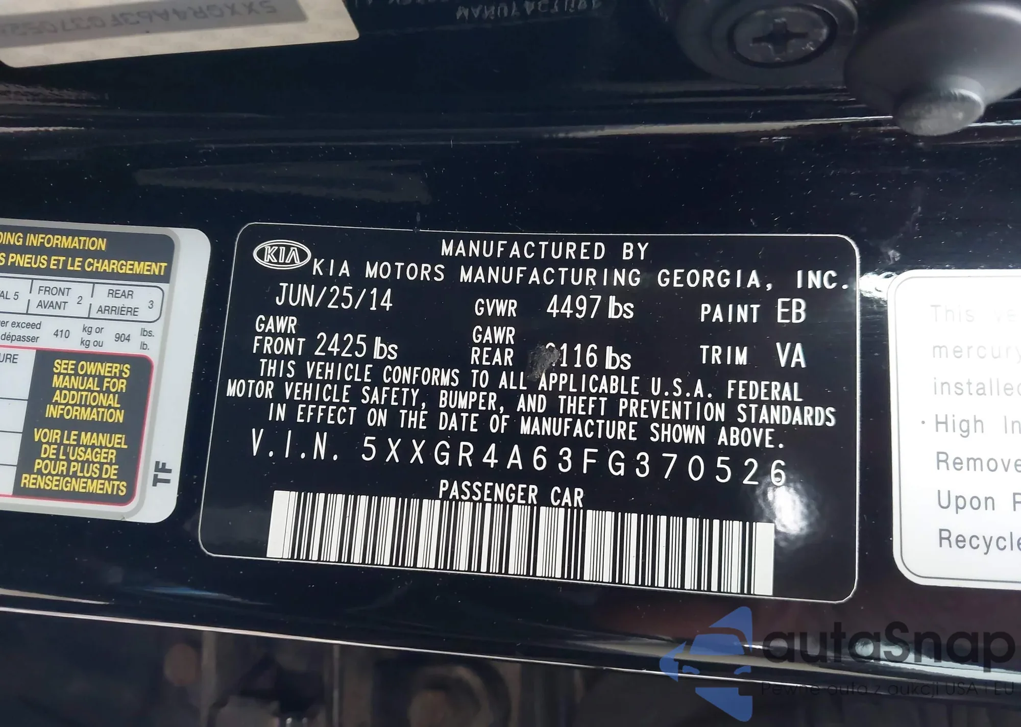 LOT: 43855612 VIN: 5XXGR4A63FG370526
