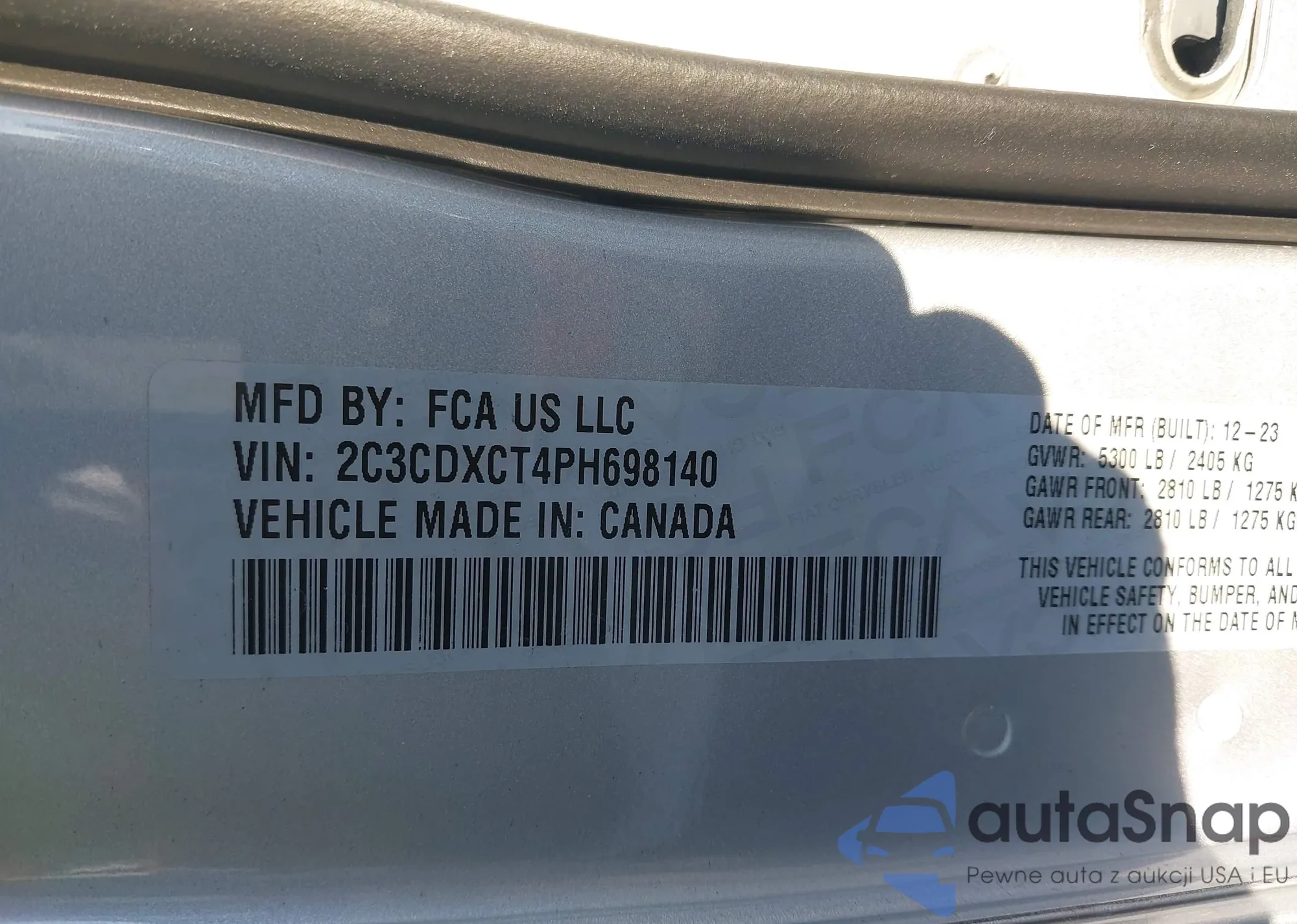 • VIN 2C3CDXCT4PH698140
