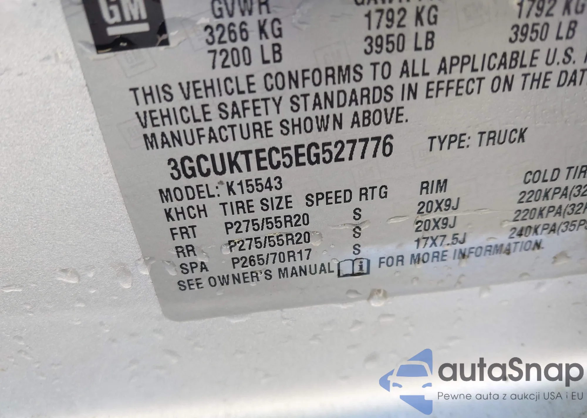 • VIN 3GCUKTEC5EG527776