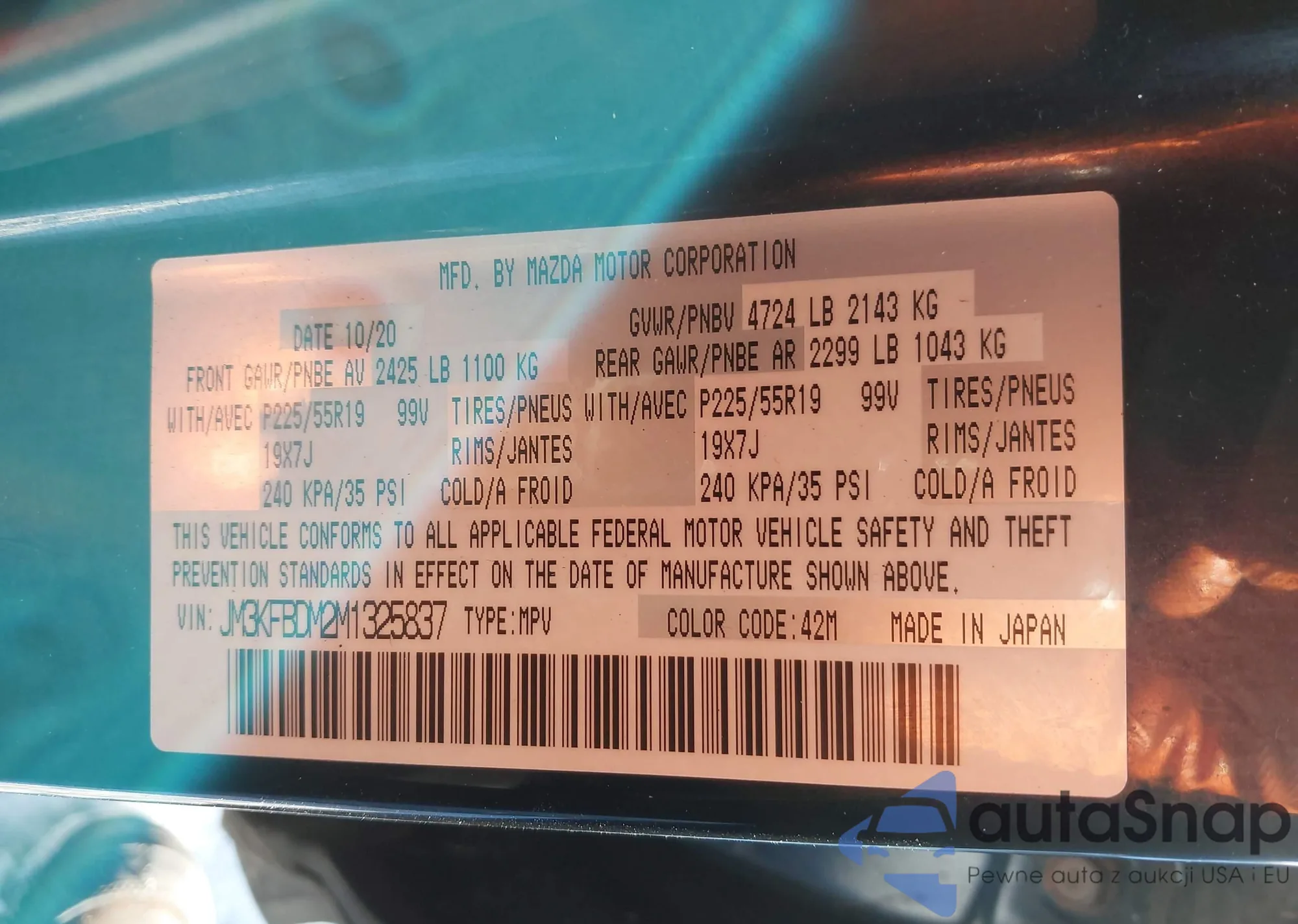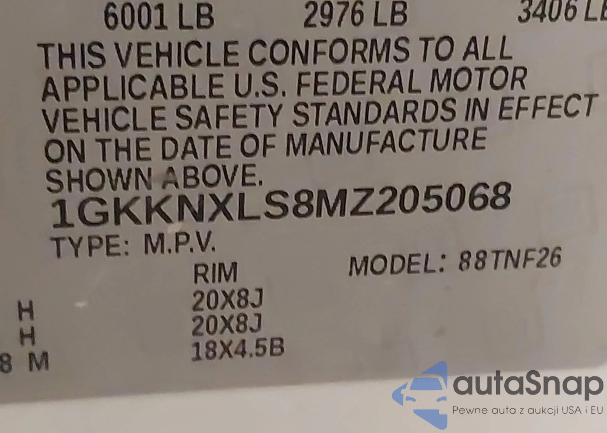 LOT: 43814525 VIN: 1GKKNXLS8MZ205068