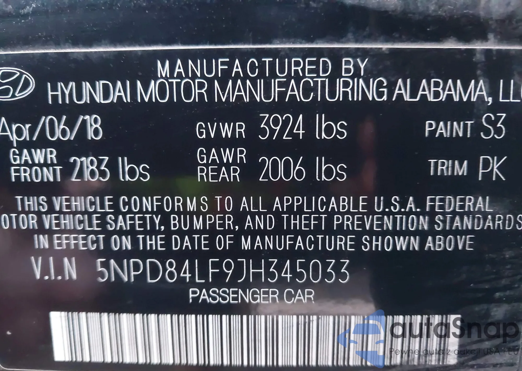 • VIN 5NPD84LF9JH345033