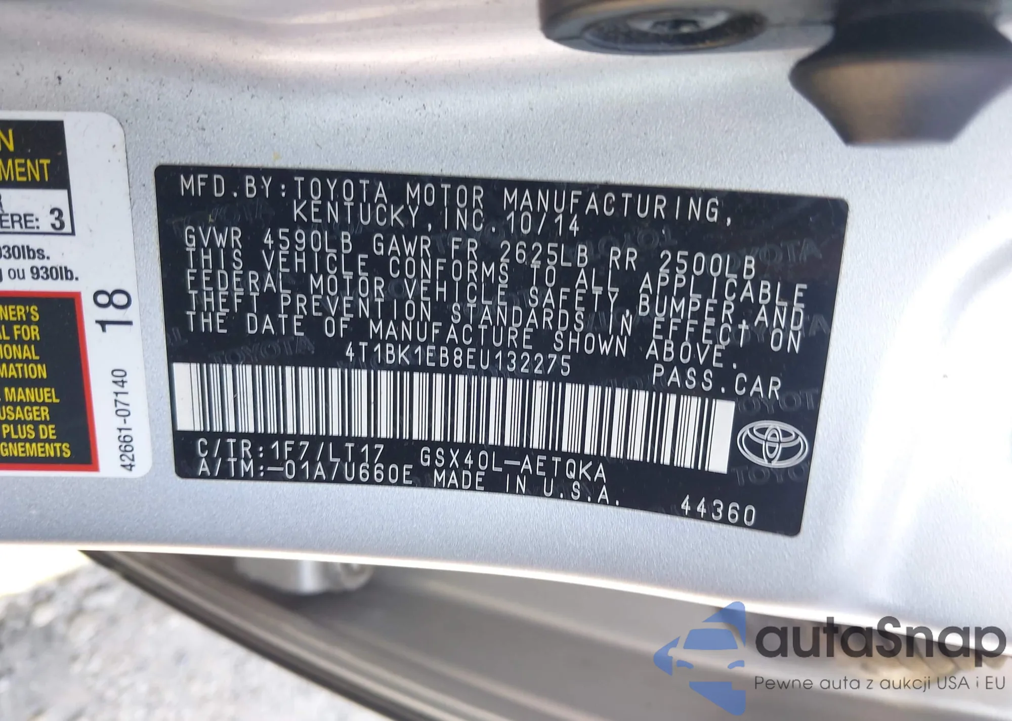 • VIN 4T1BK1EB8EU132275