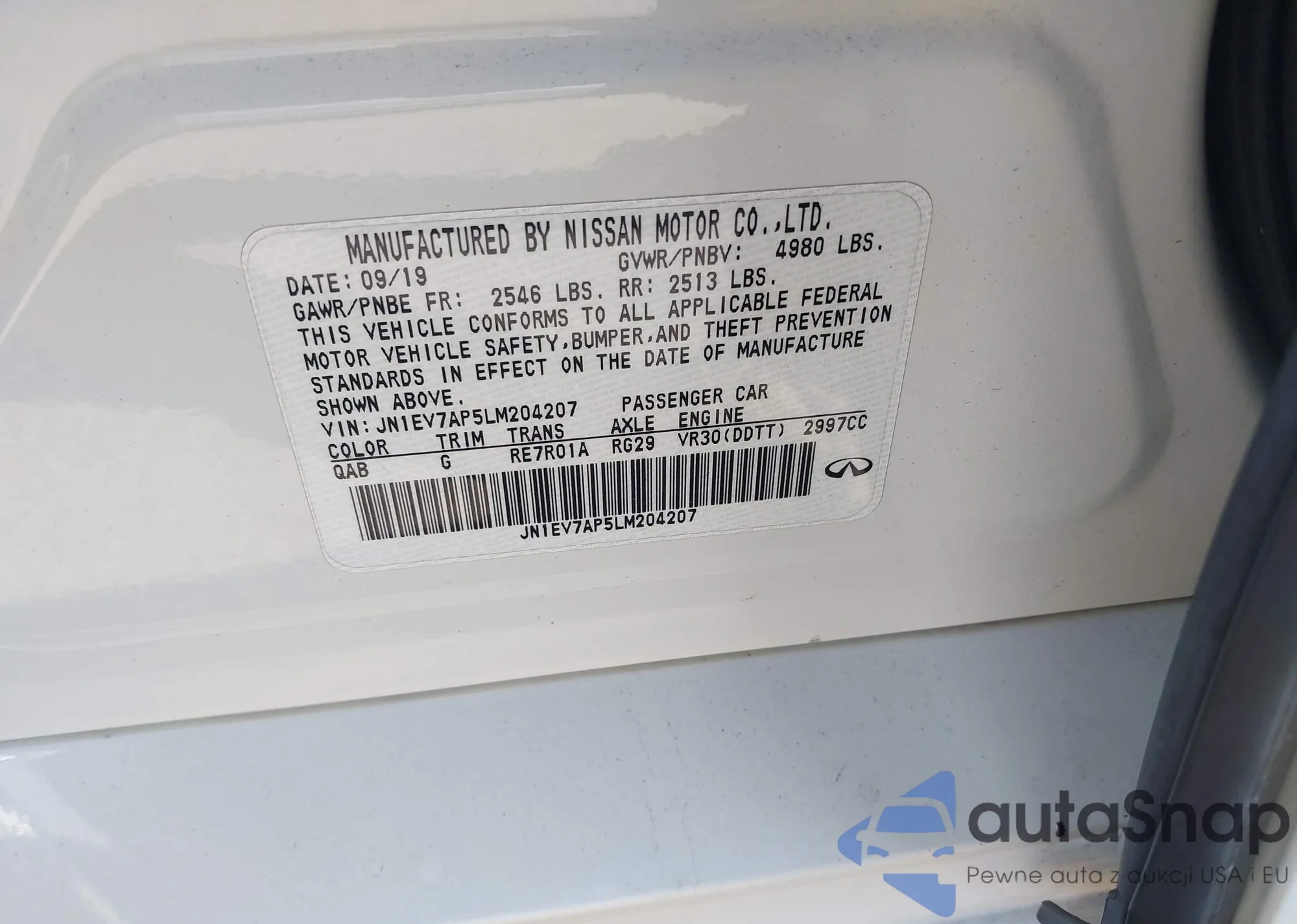 LOT: 43132403 VIN: JN1EV7AP5LM204207