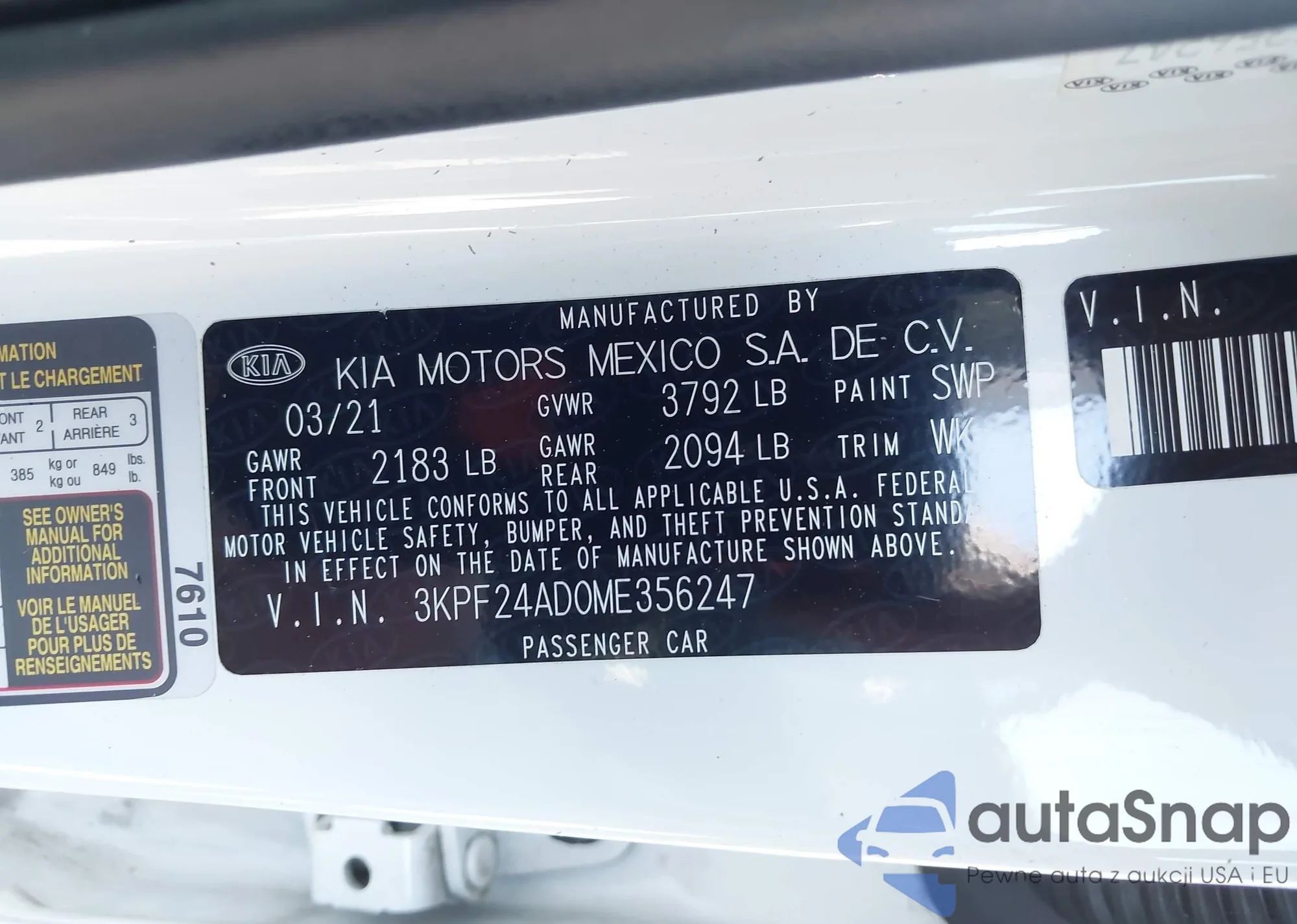 LOT: 43478444 VIN: KNAFK4A60F5407887