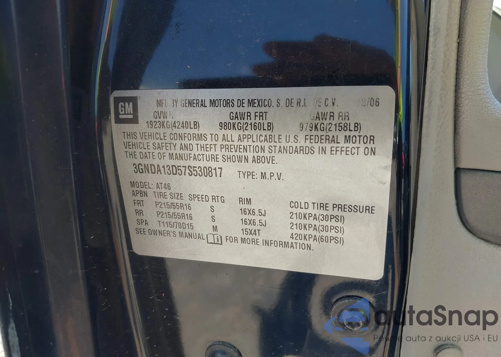 LOT: 42660343 VIN: 3GNDA13D57S530817