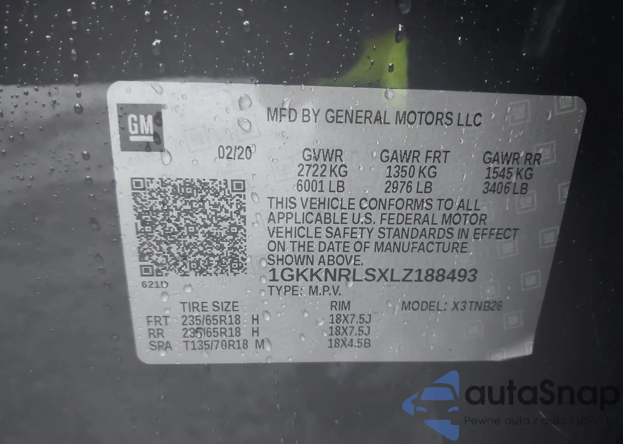 LOT: 43546682 VIN: 1GKKNRLSXLZ188493
