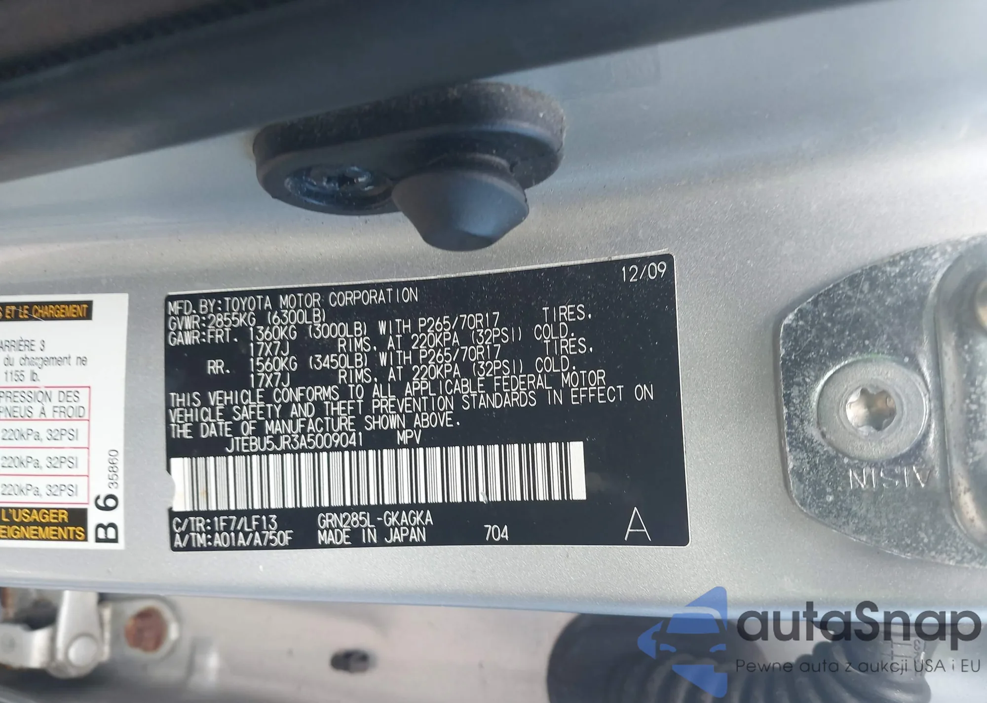 LOT: 43729264 VIN: JTEBU5JR3A5009041