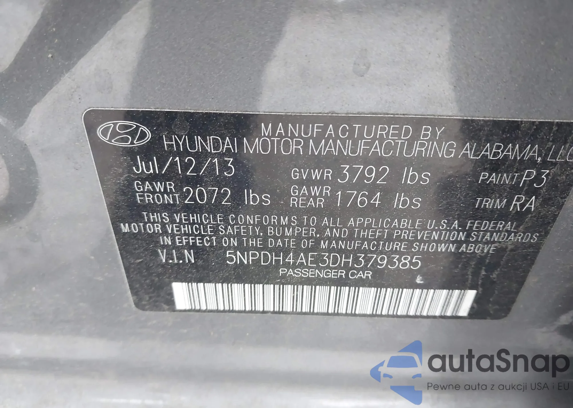 • VIN 5NPDH4AE3DH379385