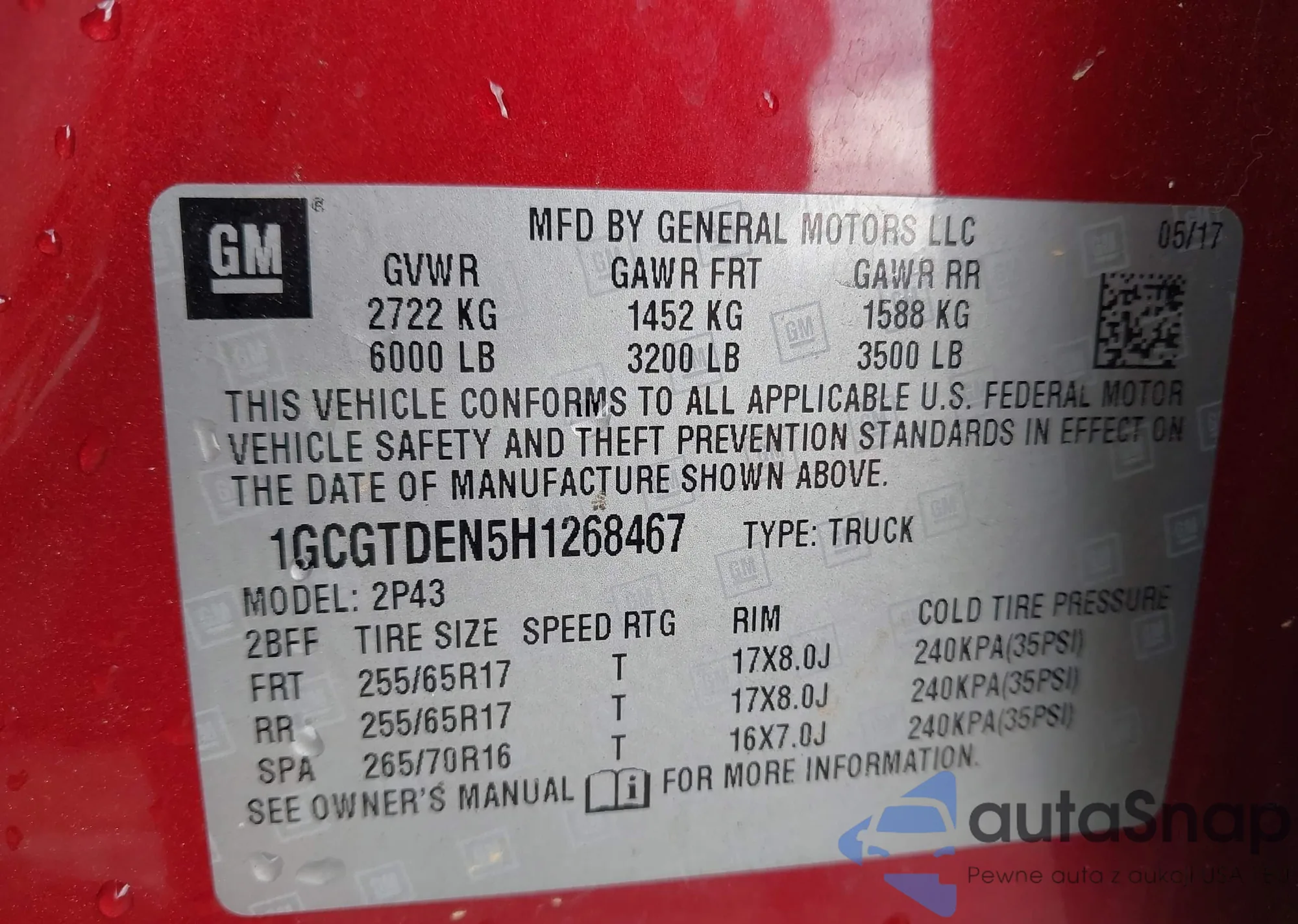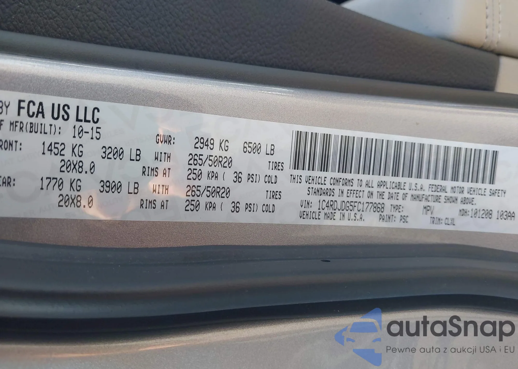 • VIN 1C4RDJDG5FC177868