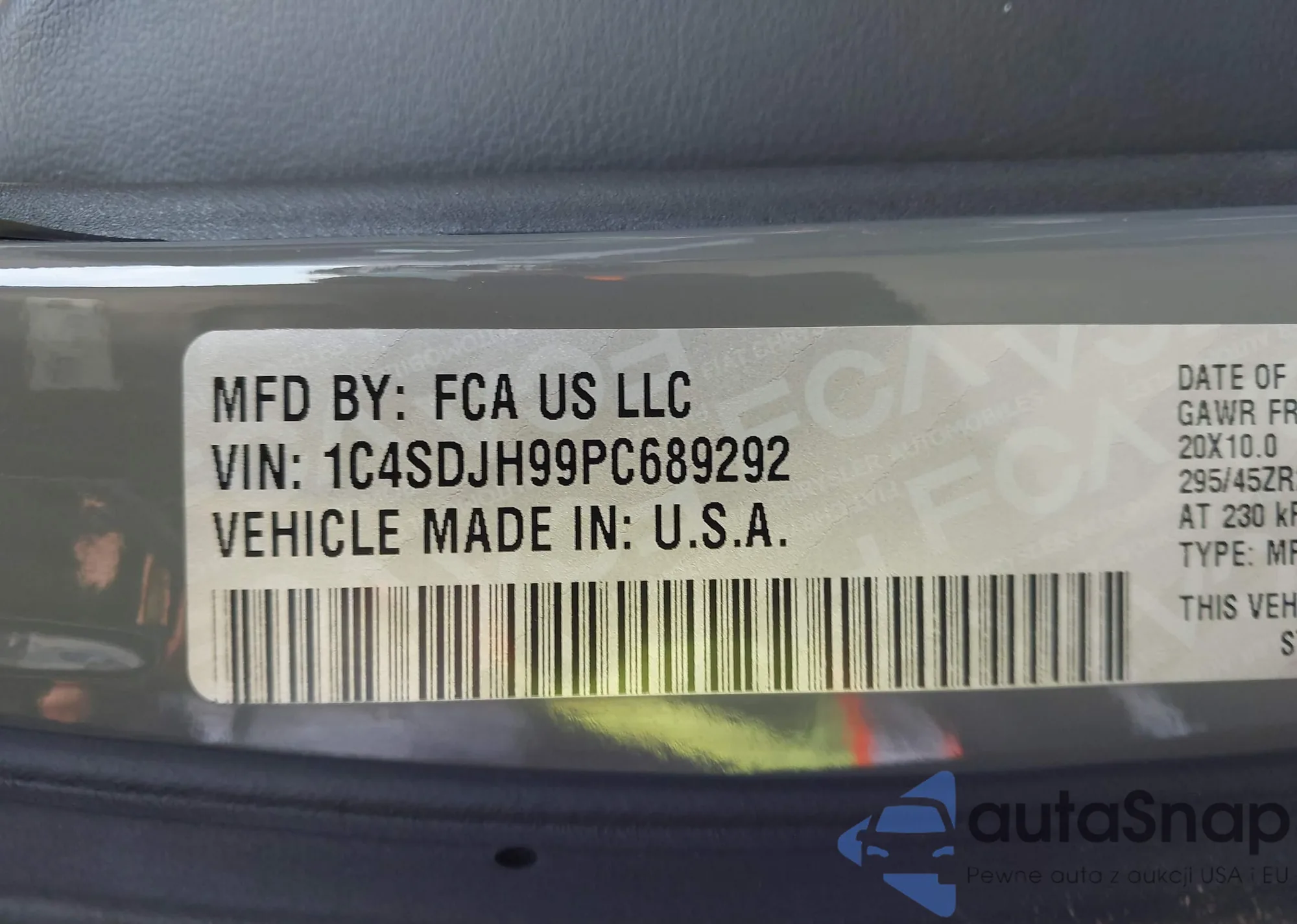 LOT: 43833951 VIN: 1C4SDJH99PC689292