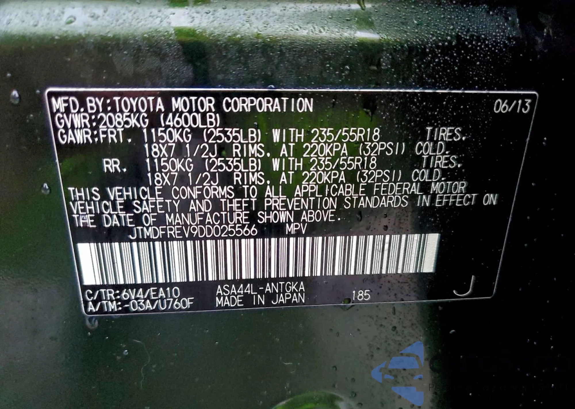 • VIN JTMDFREV9DD025566