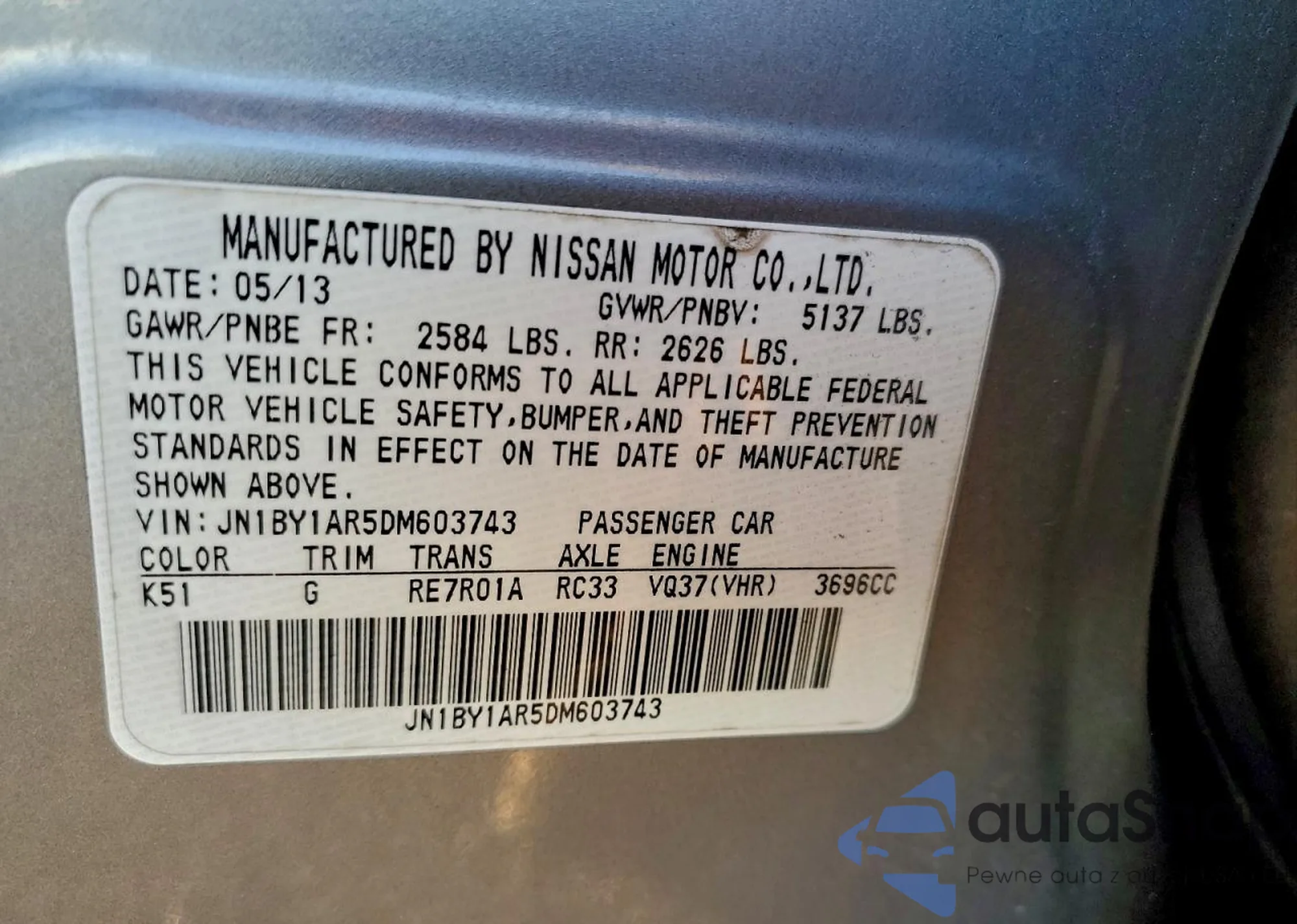 • VIN JN1BY1AR5DM603743