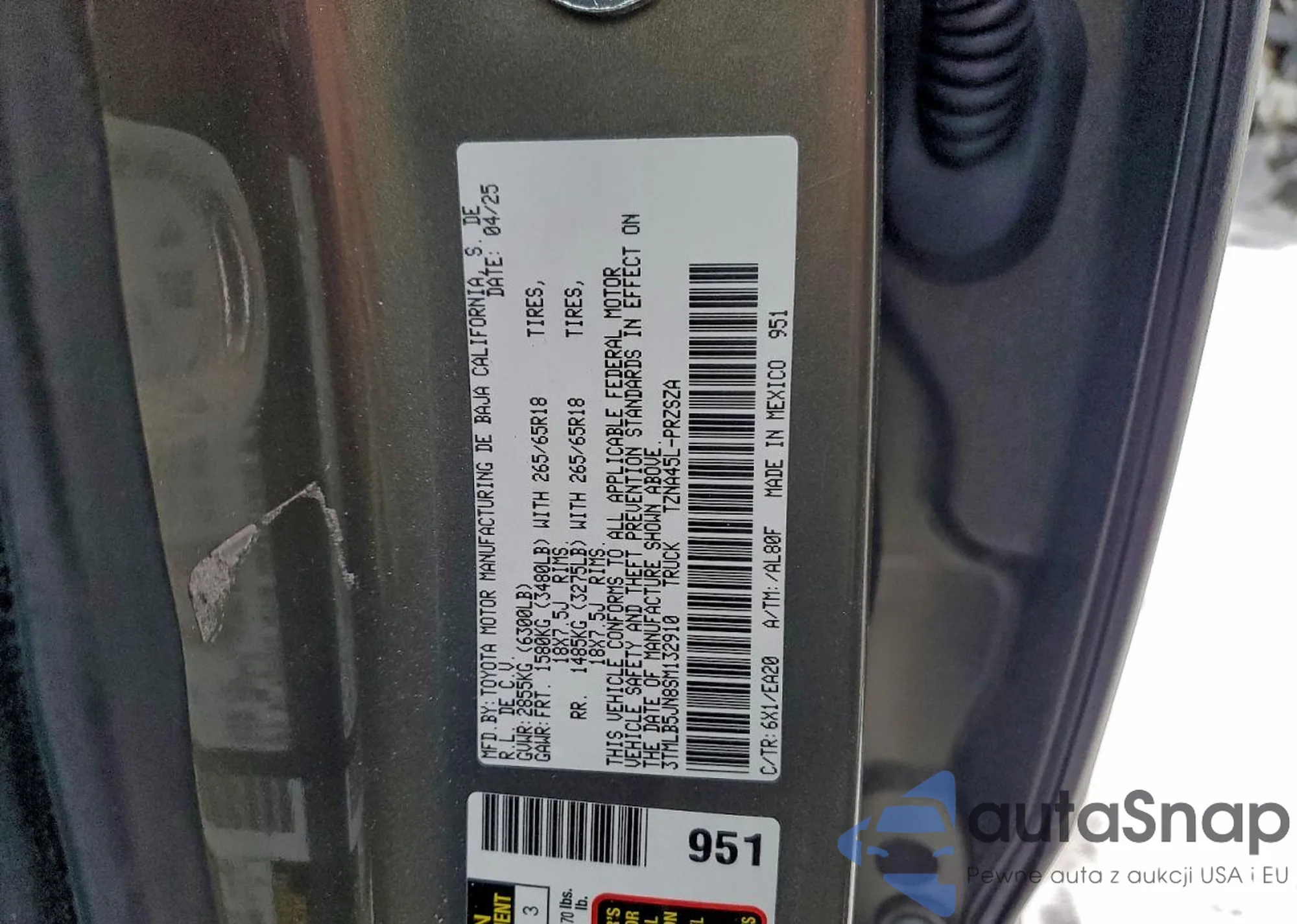 • VIN 3TMLB5JN8SM132910
