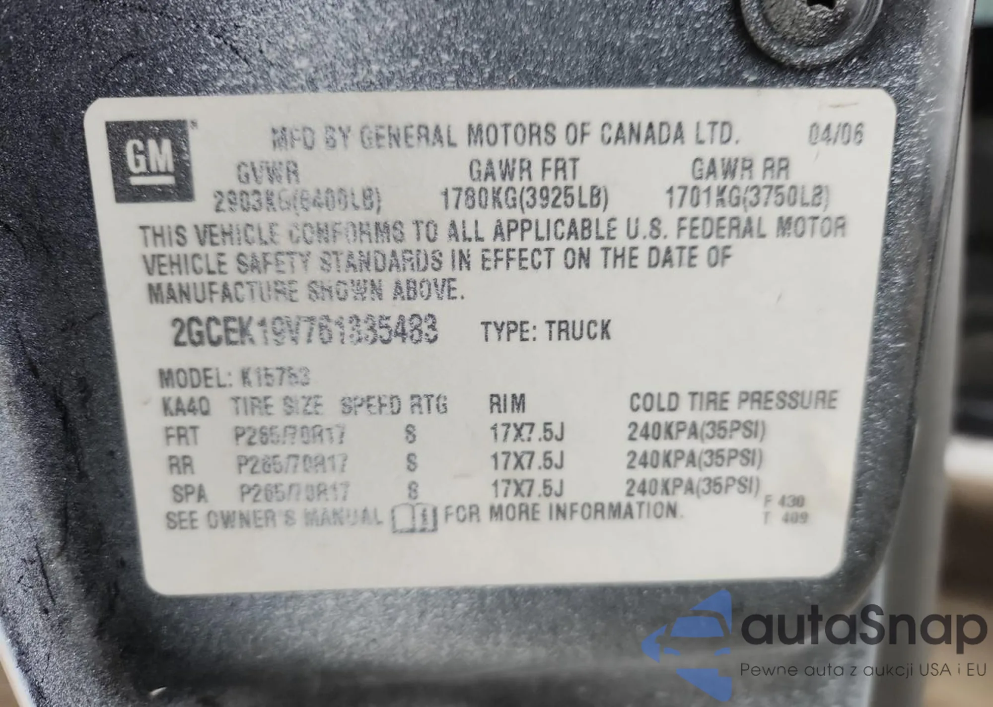 • VIN 2GCEK19V761335483