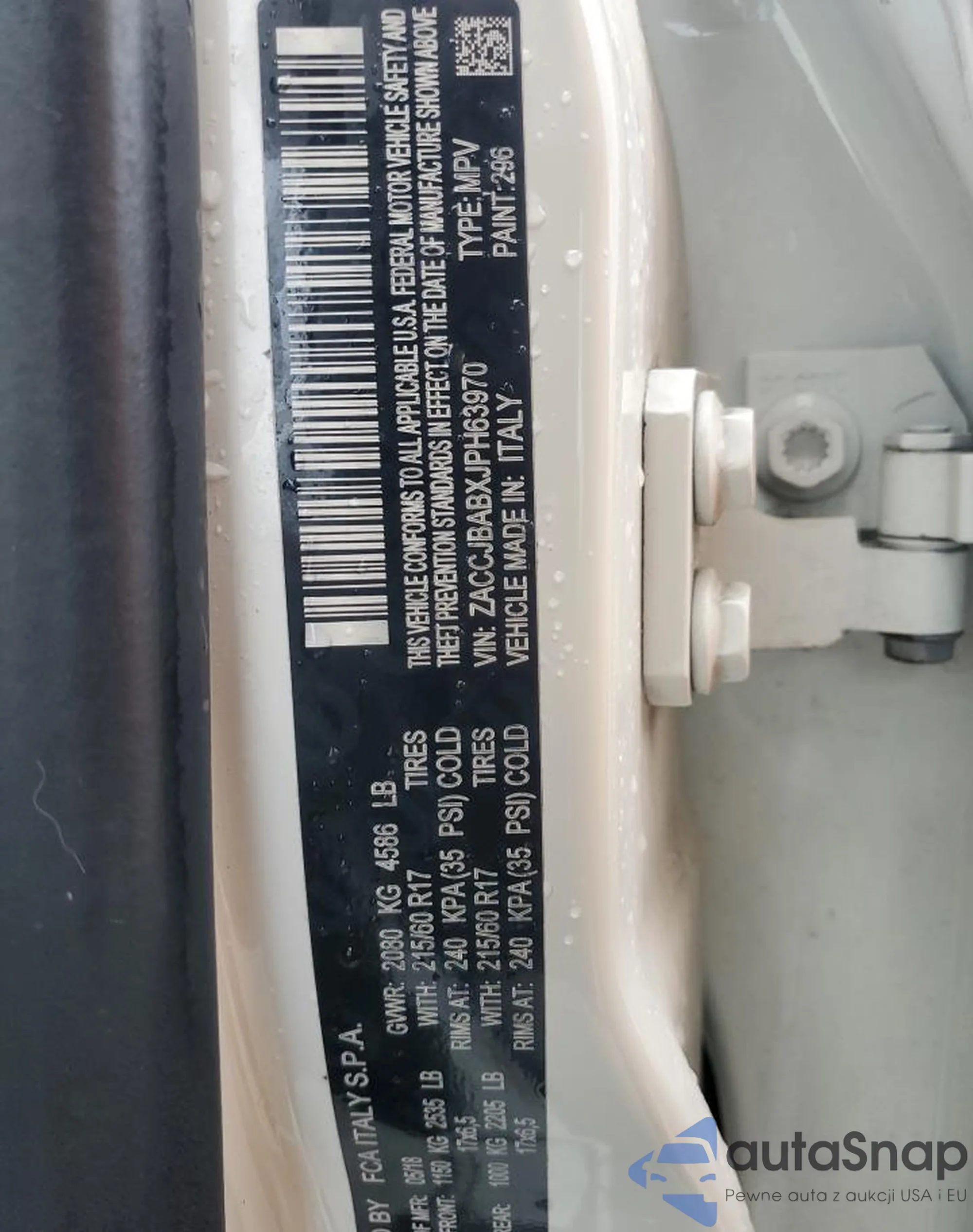 LOT: 92123415 VIN: ZACCJBABXJPH63970