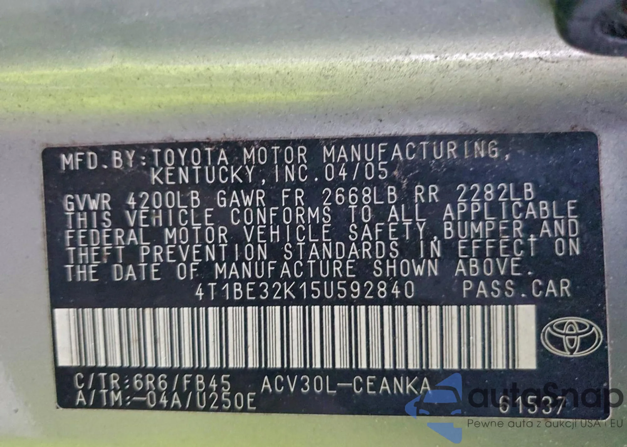 LOT: 95445325 VIN: JM3TCACY4H0127333