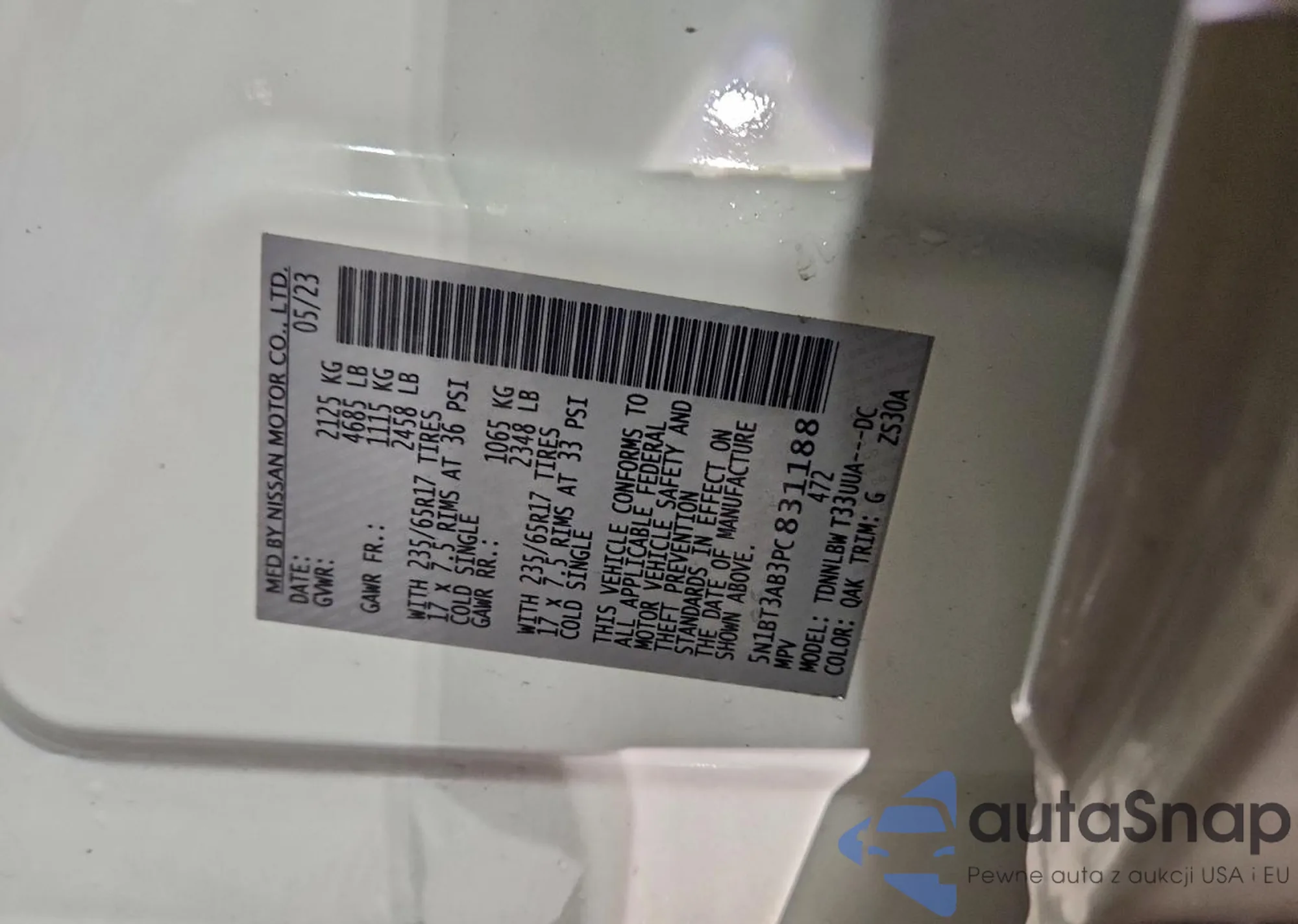 • VIN 5N1BT3AB3PC831188