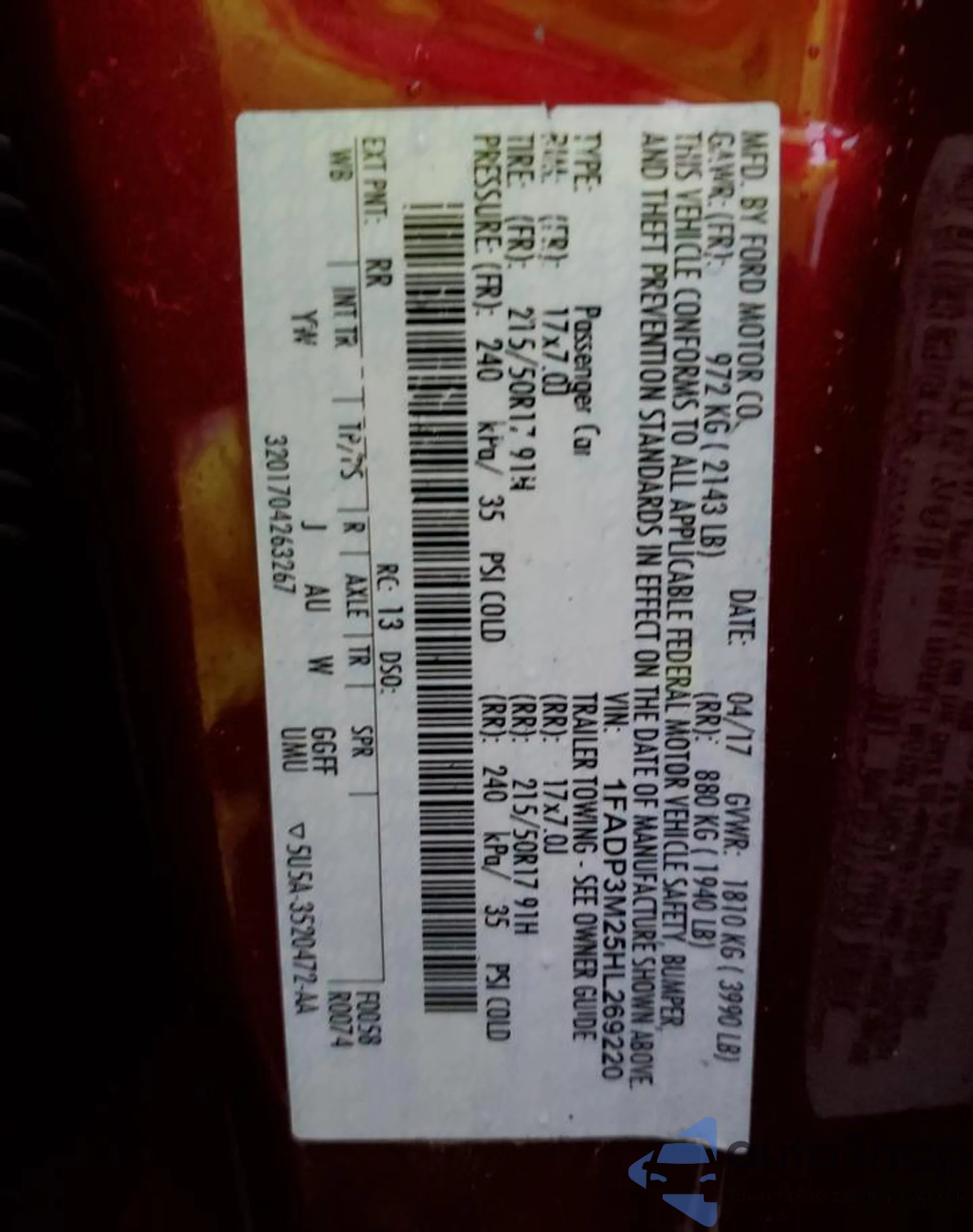 • VIN 3FADP4BJ0FM208742