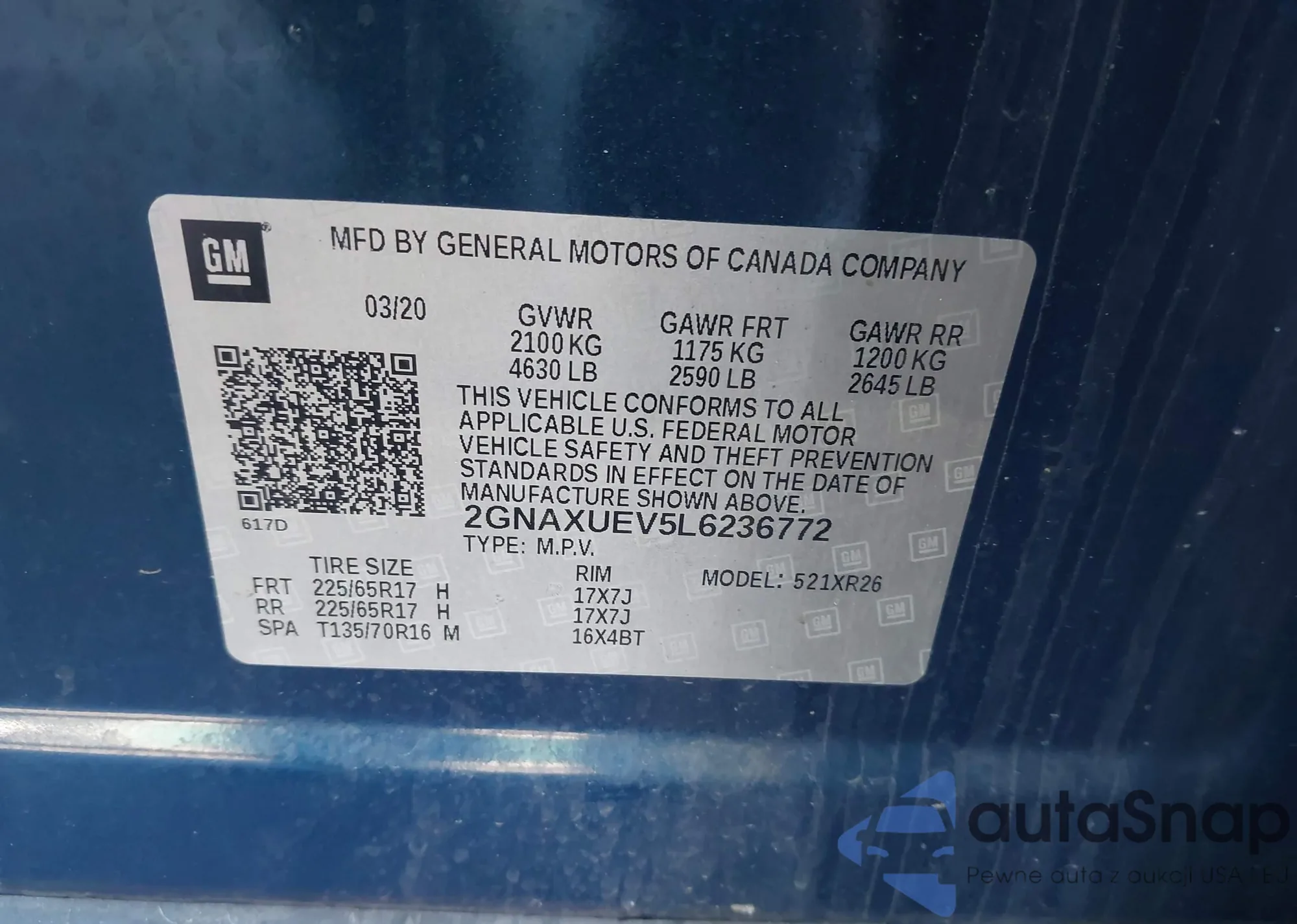 LOT: 43695828 VIN: 2GNAXUEV5L6236772