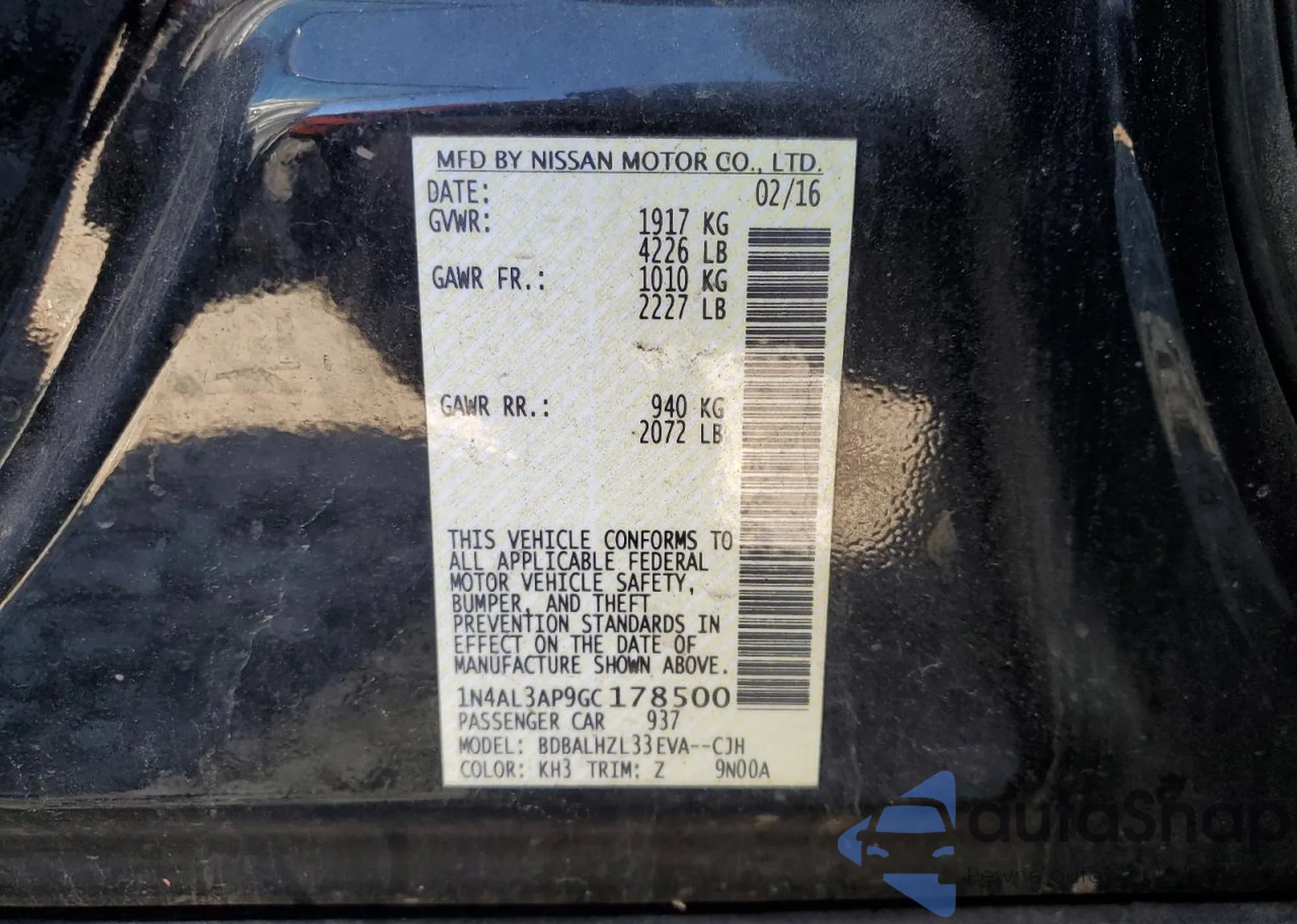 • VIN 1N4AL3AP9GC178500