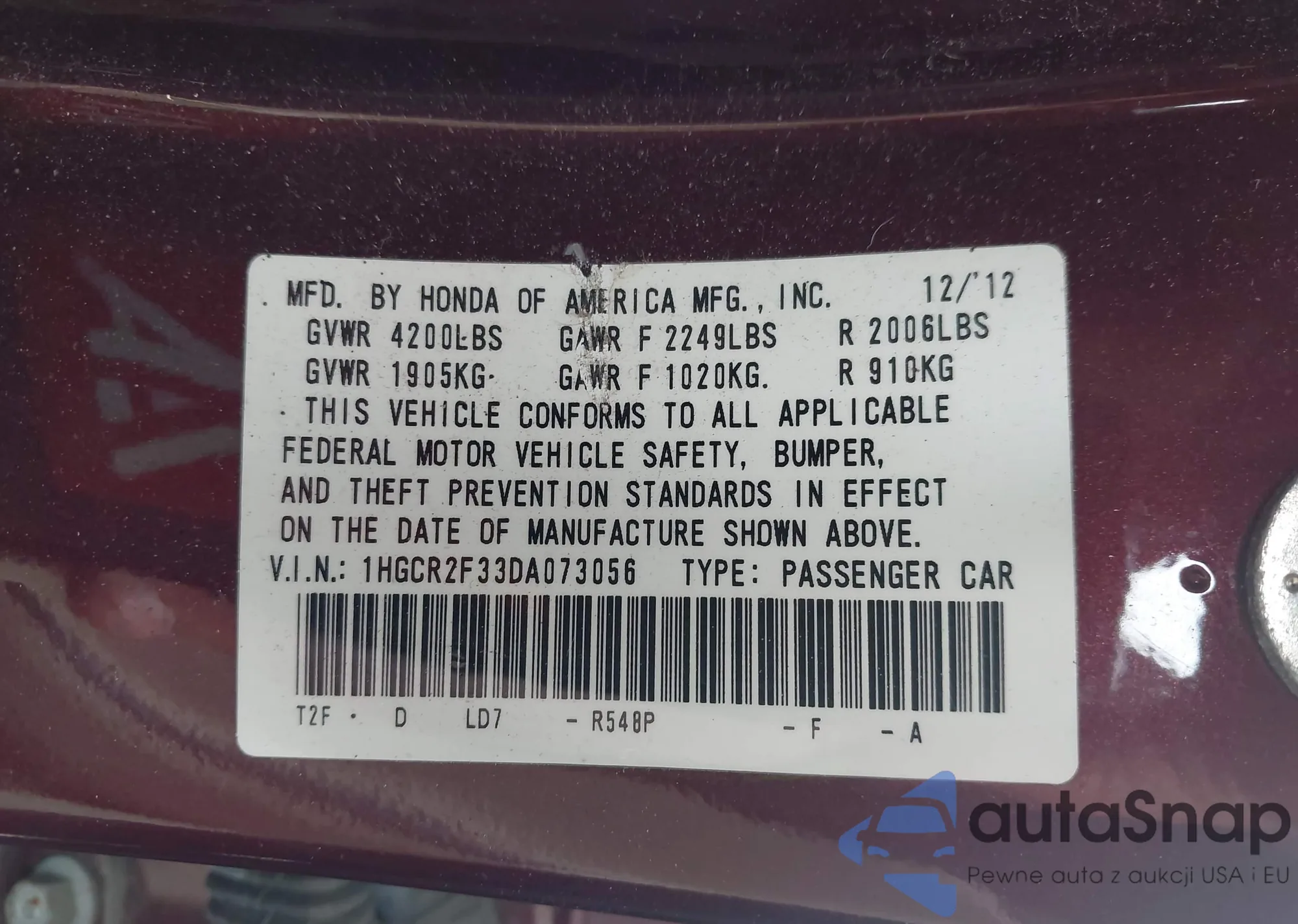 LOT: 43804657 VIN: 5NPEB4AC9DH645674