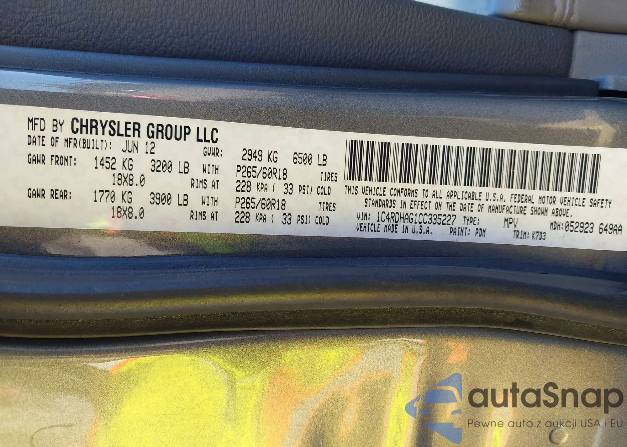 • VIN 1C4RDHAG1CC335227