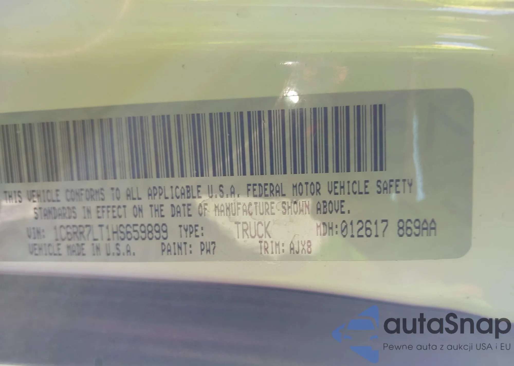 • VIN 1C6RR7LT1HS659899