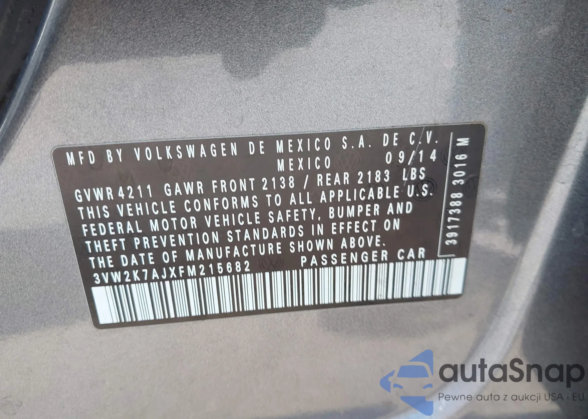 • VIN 3VW2K7AJXFM215682