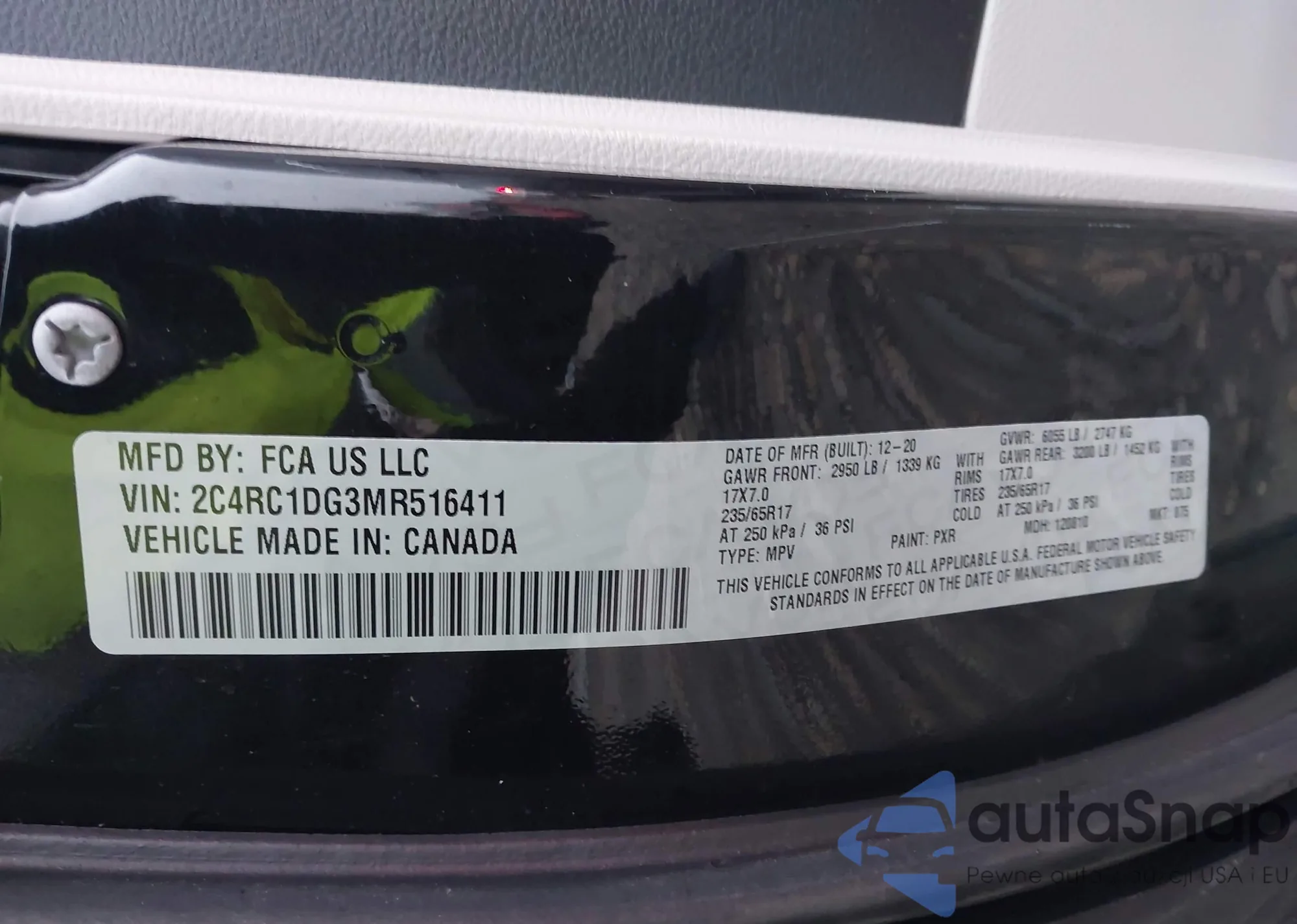 LOT: 43742954 VIN: 2C4RC1DG3MR516411