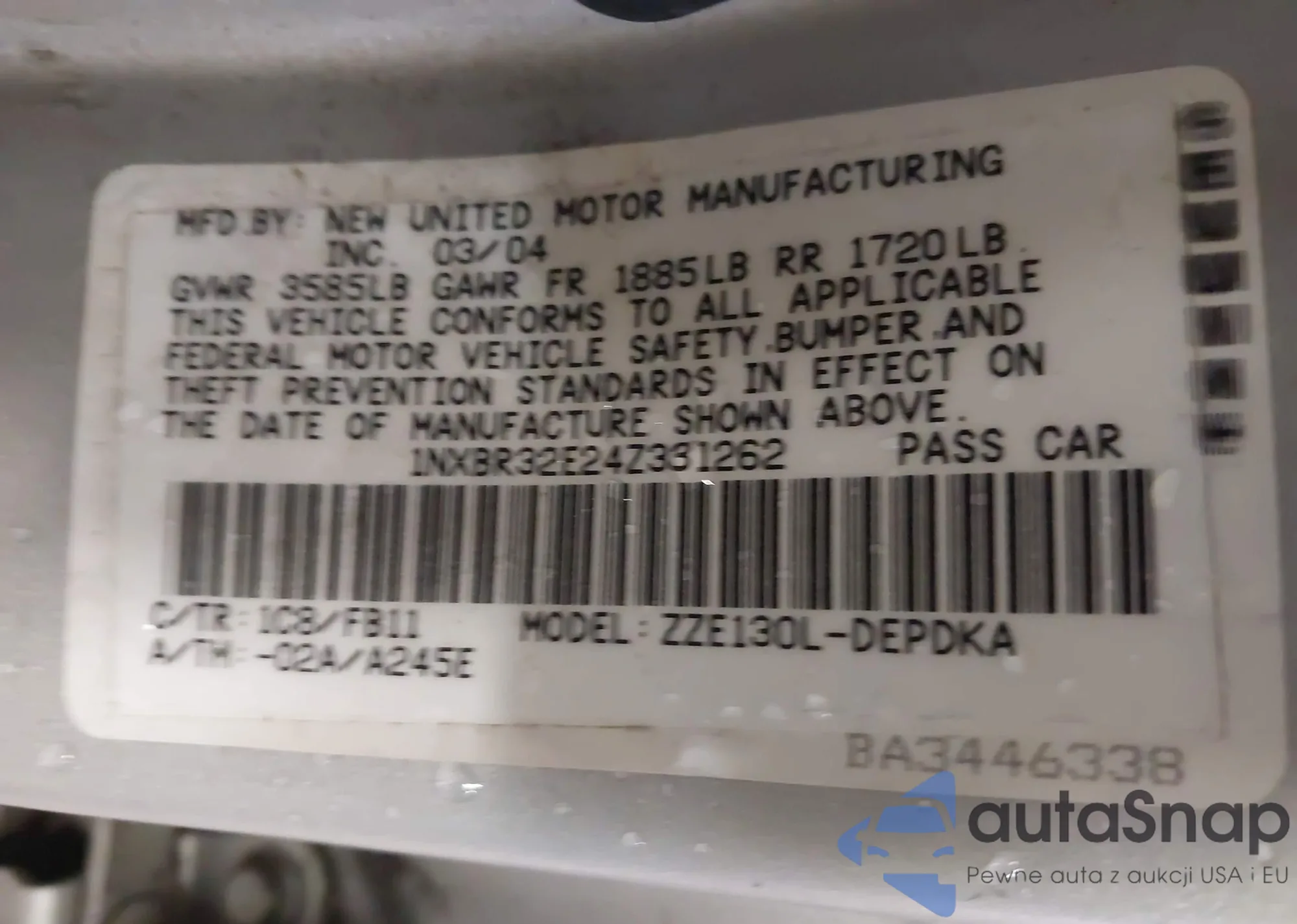LOT: 43995121 VIN: 1NXBR32E24Z331262